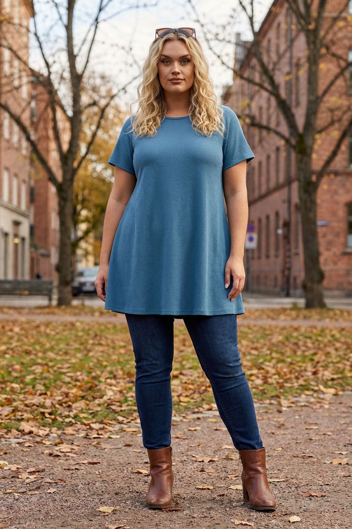 Bisiklet Yaka Kısa Kollu Fitilli Esnek Kumaş Uzun T-shirt 304002