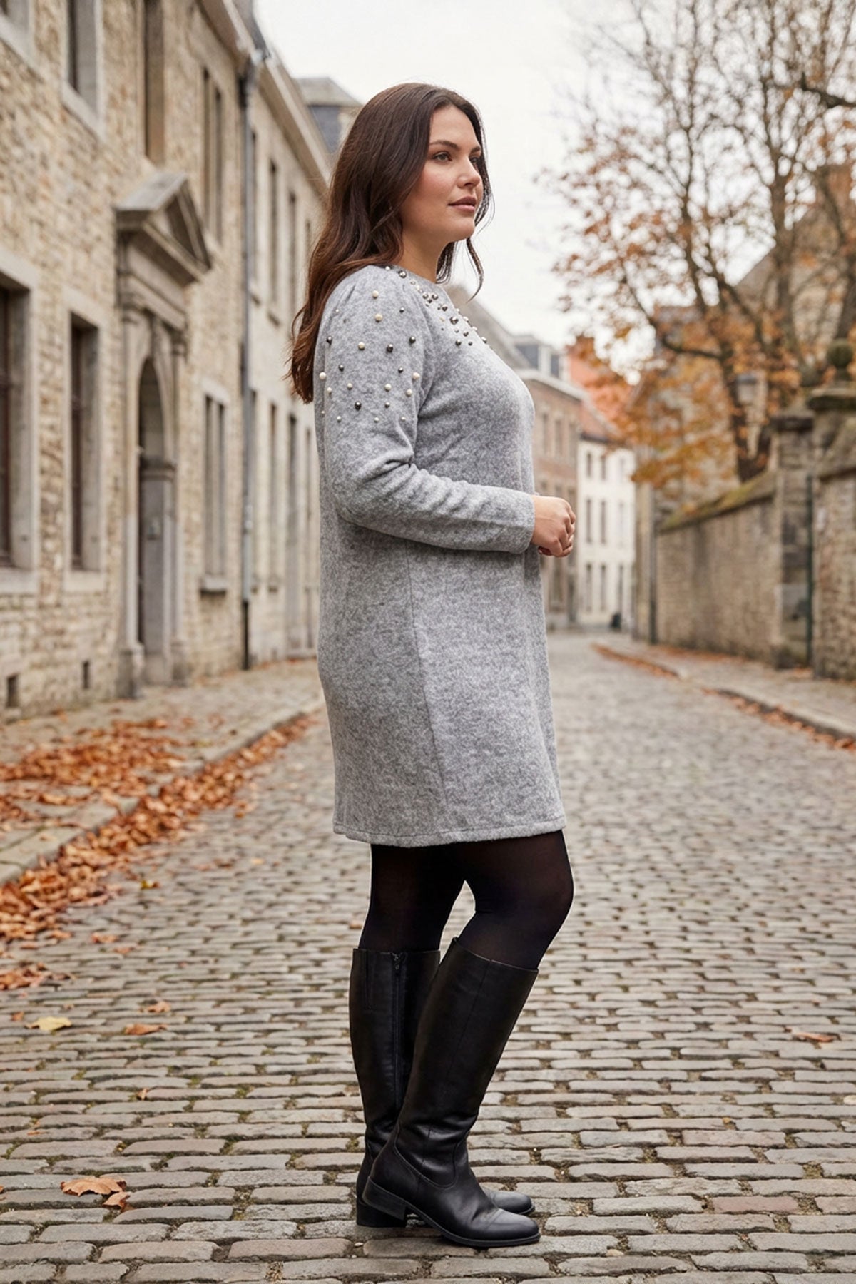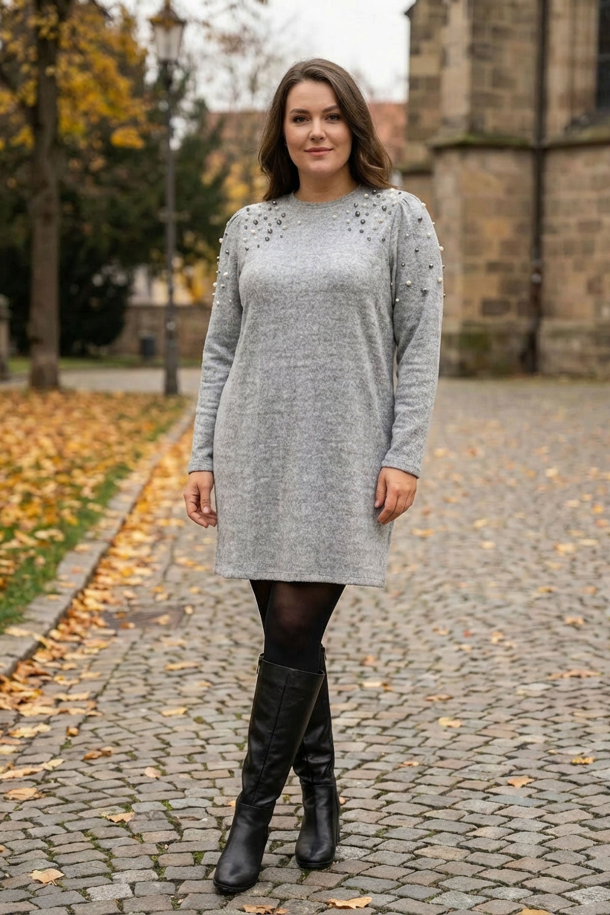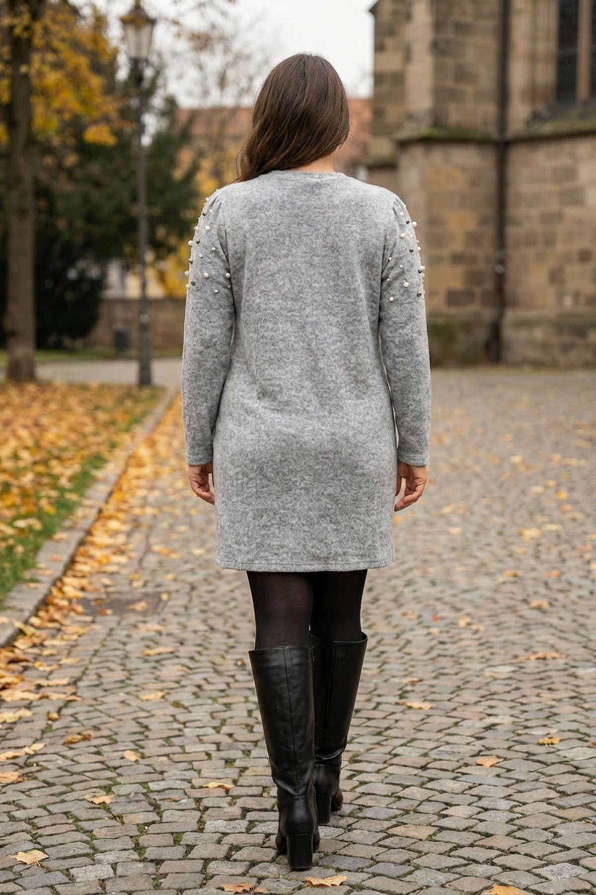 Bisiklet Yaka Uzun Kollu Boncuk İşlemeli Peluş Tunik 615153