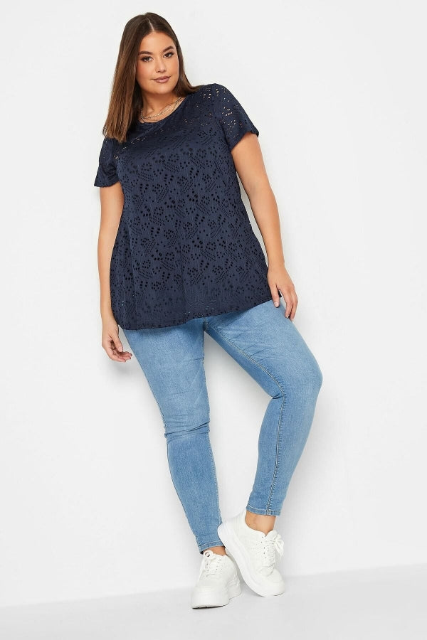 Büyük Beden Dantel Detaylı V Yaka Astarsız Bluz 321027A