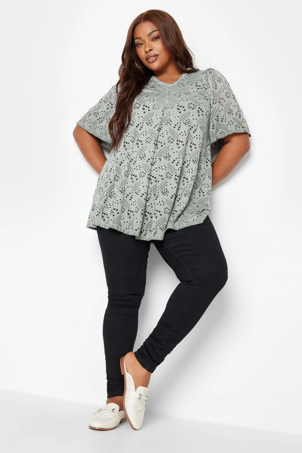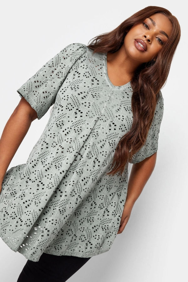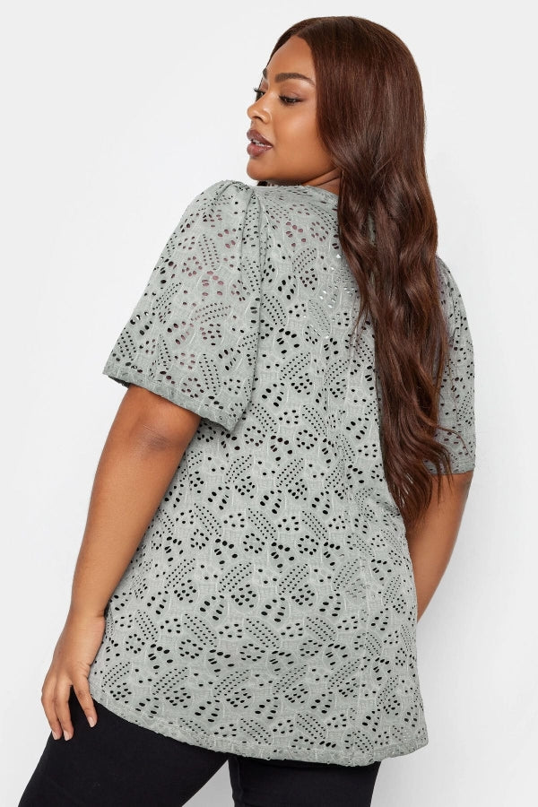 Büyük Beden Dantel Detaylı V Yaka Yarım Kollu Astarsız Bluz 302488