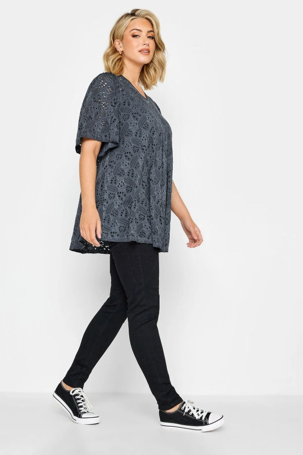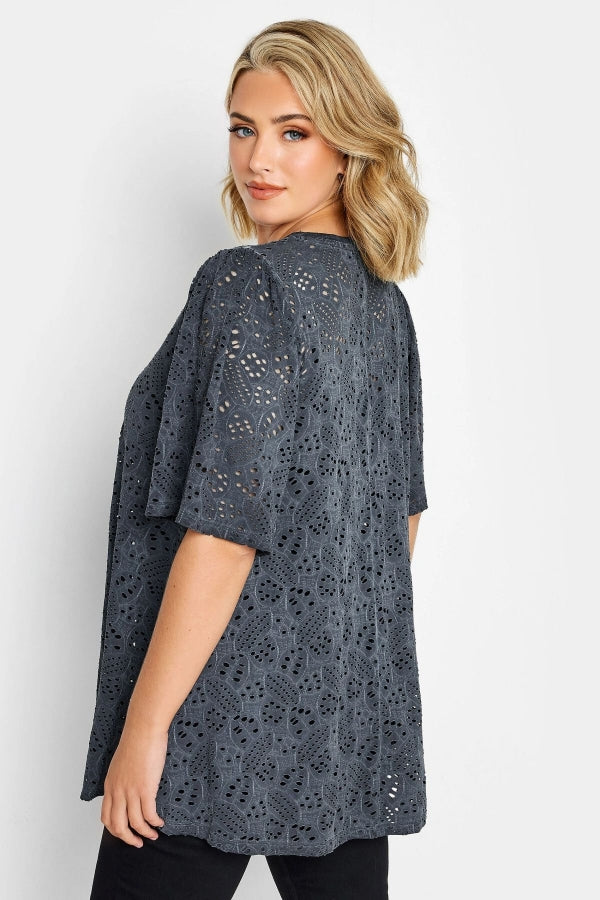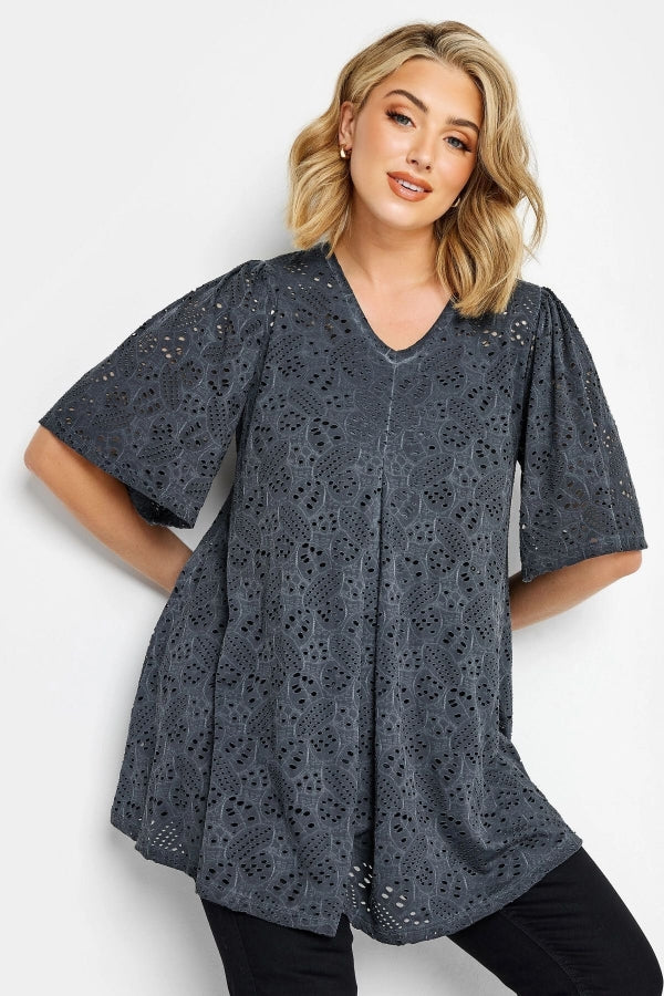 Büyük Beden Dantel Detaylı V Yaka Yarım Kollu Astarsız Bluz 302489