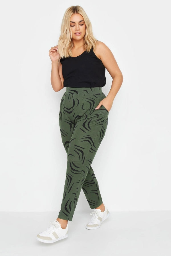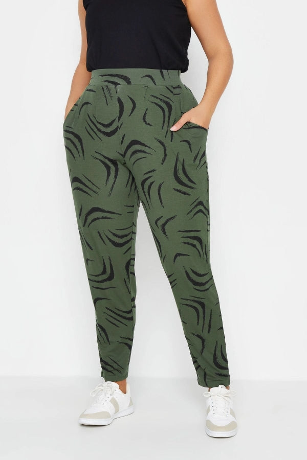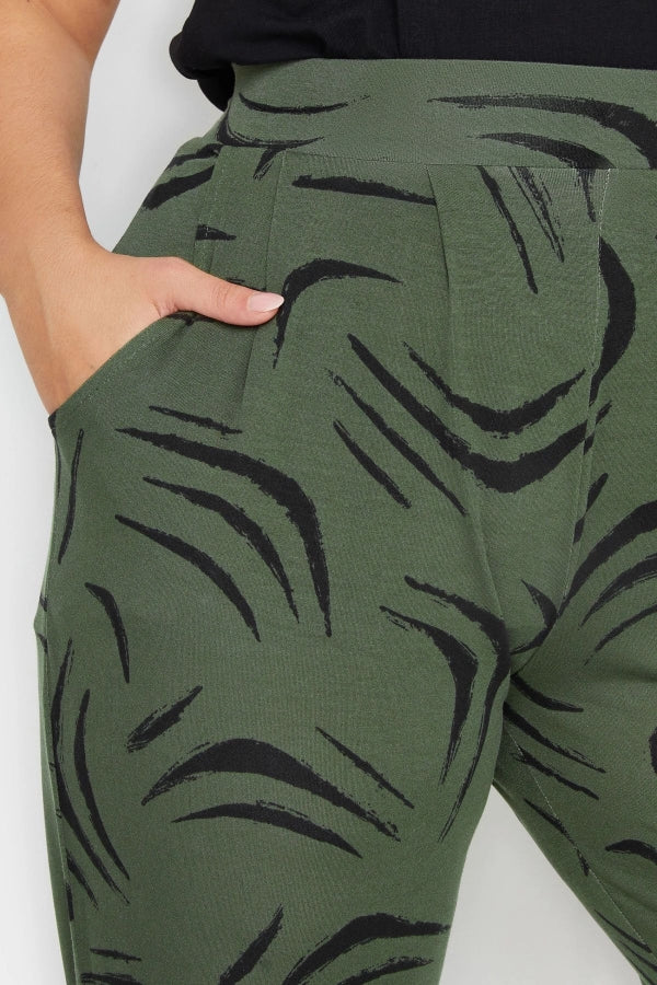 Büyük Beden Dar Paça Desenli Cepli Havuç Kesim Likralı Pantolon 143742