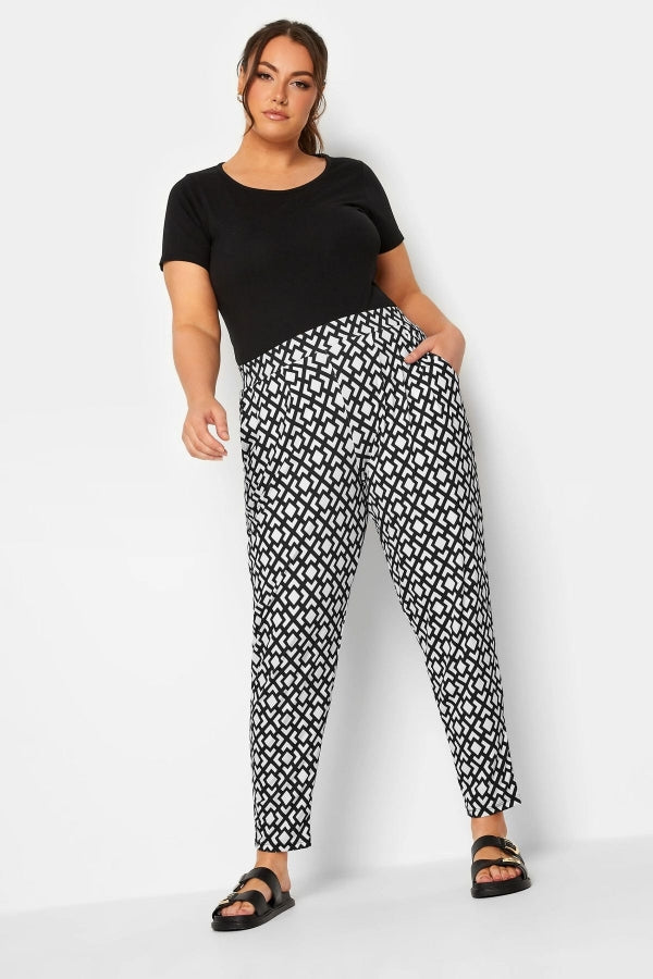 Büyük Beden Dar Paça Desenli Cepli Havuç Kesim Likralı Pantolon 302292
