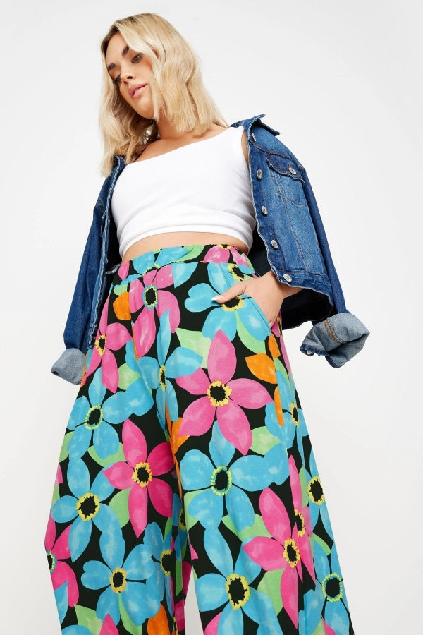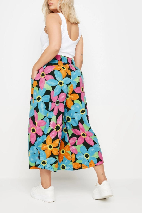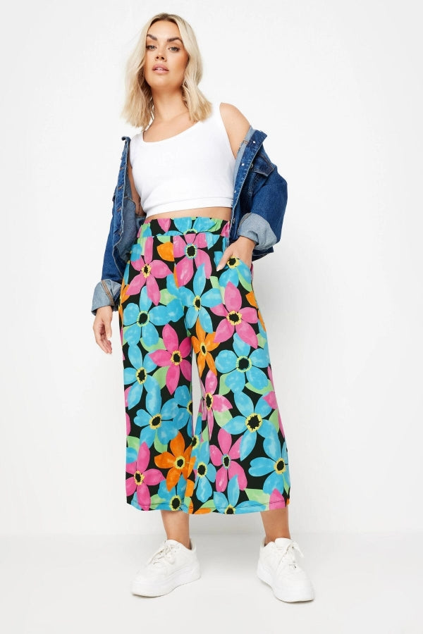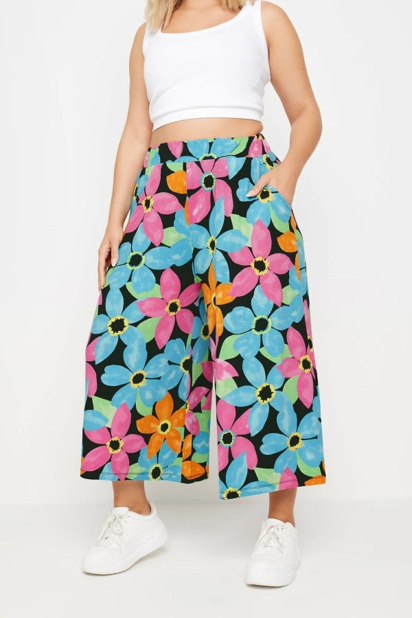 Büyük Beden Desenli Bol Kesim Cepli Likralı Kapri Pantolon 145091