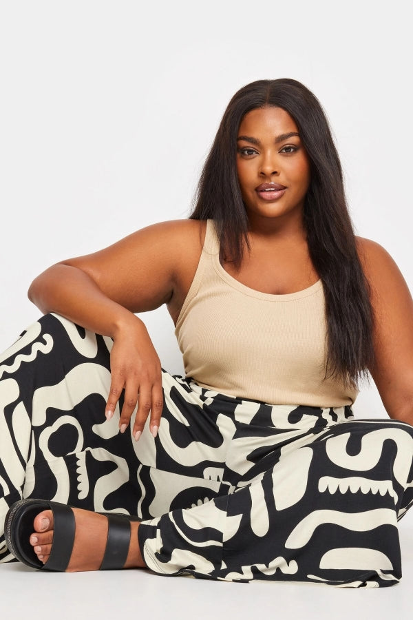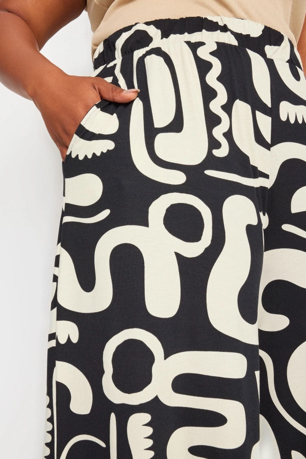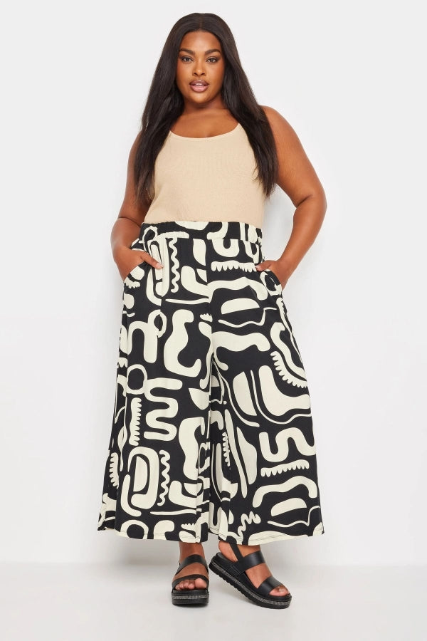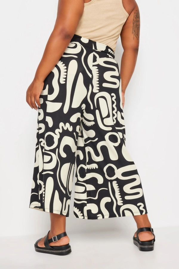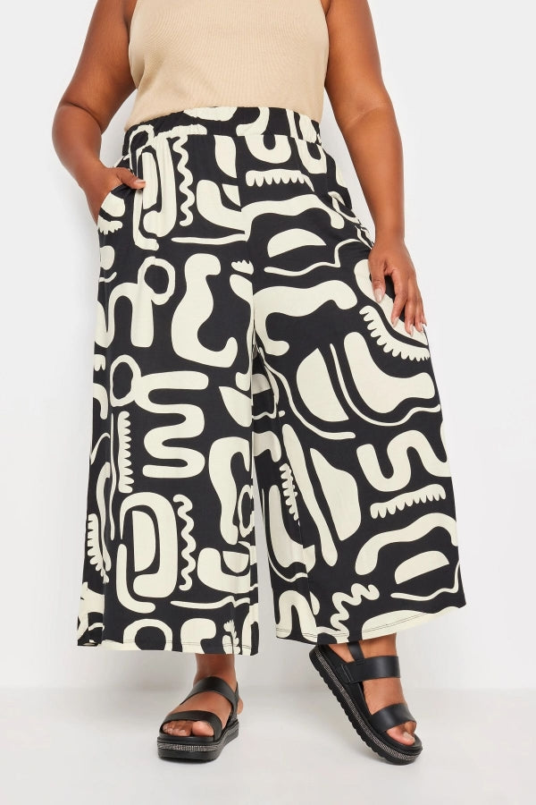 Büyük Beden Desenli Bol Kesim Cepli Likralı Kapri Pantolon 145094