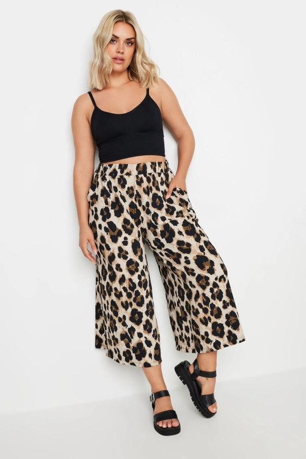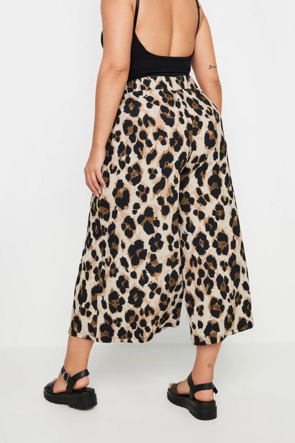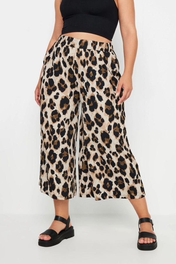 Büyük Beden Desenli Bol Kesim Cepli Likralı Kapri Pantolon 145133