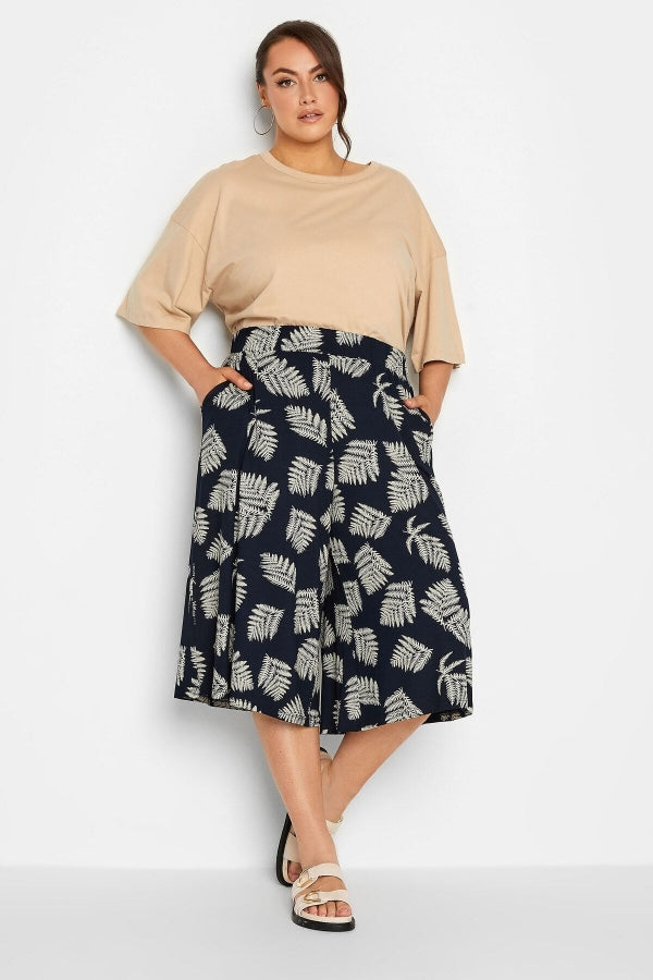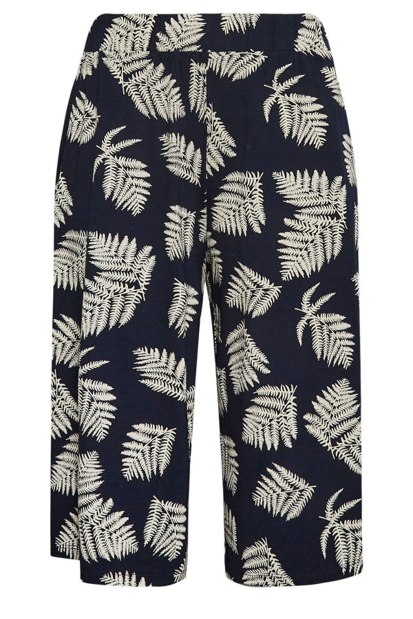 Büyük Beden Desenli Bol Kesim Cepli Likralı Kapri Pantolon 302429