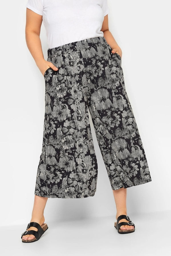 Büyük Beden Desenli Bol Kesim Cepli Likralı Kapri Pantolon 302444