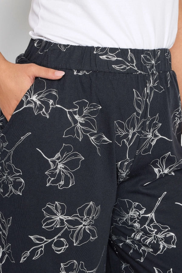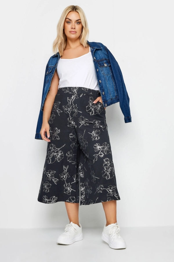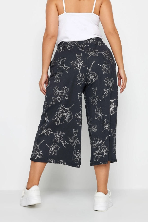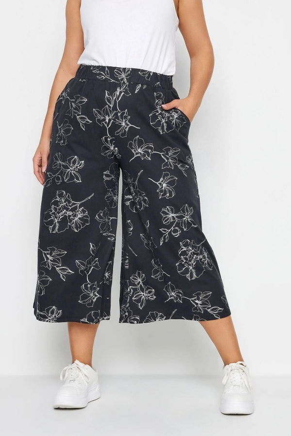 Büyük Beden Desenli Bol Kesim Cepli Likralı Kapri Pantolon 302578