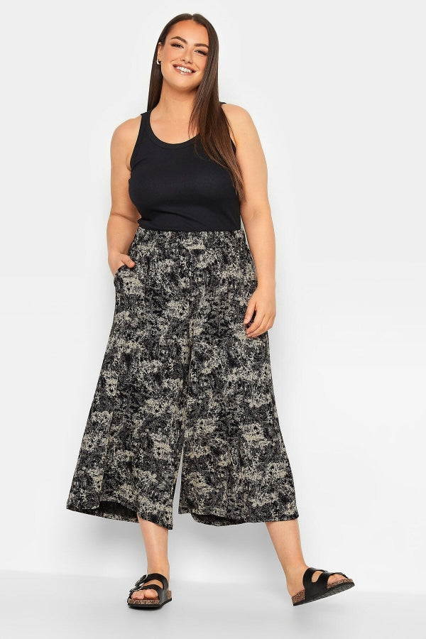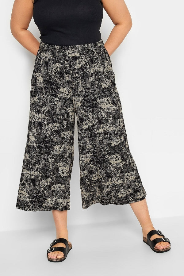 Büyük Beden Desenli Bol Kesim Likralı Kapri Pantolon 302441