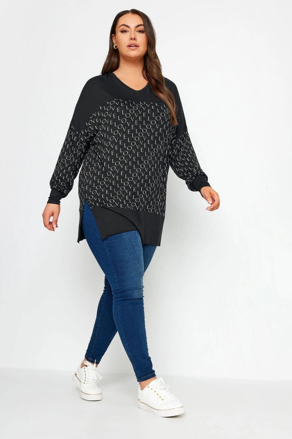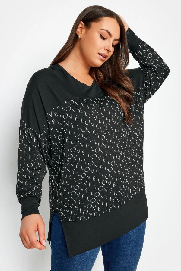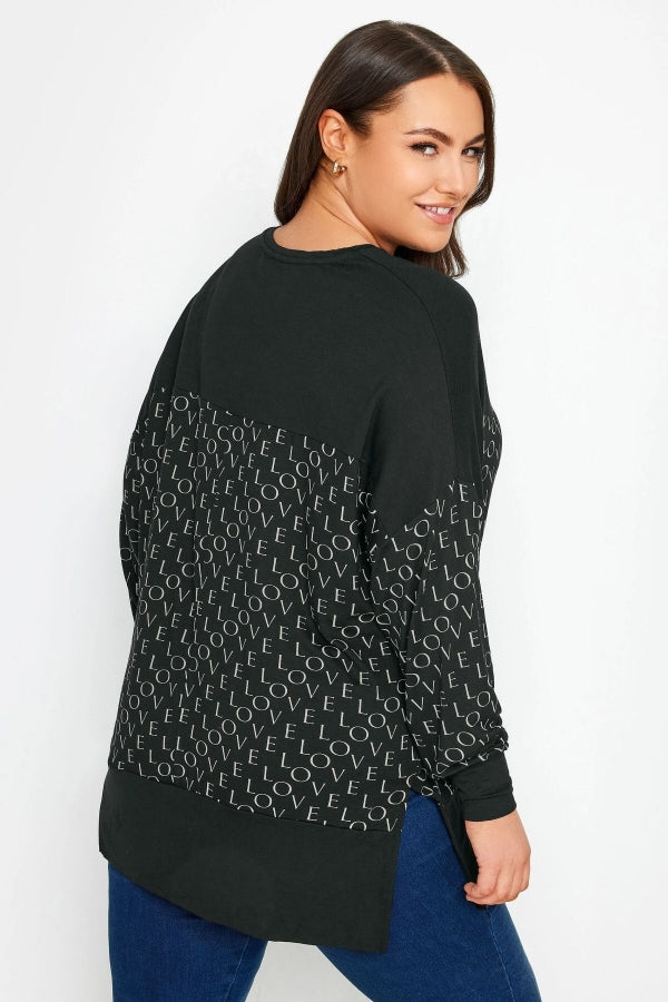 Büyük Beden Desenli Esnek Kumaş Uzun Kollu Uzun Kesim Bluz 302559