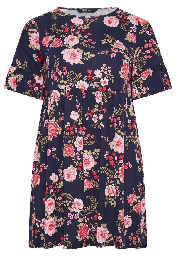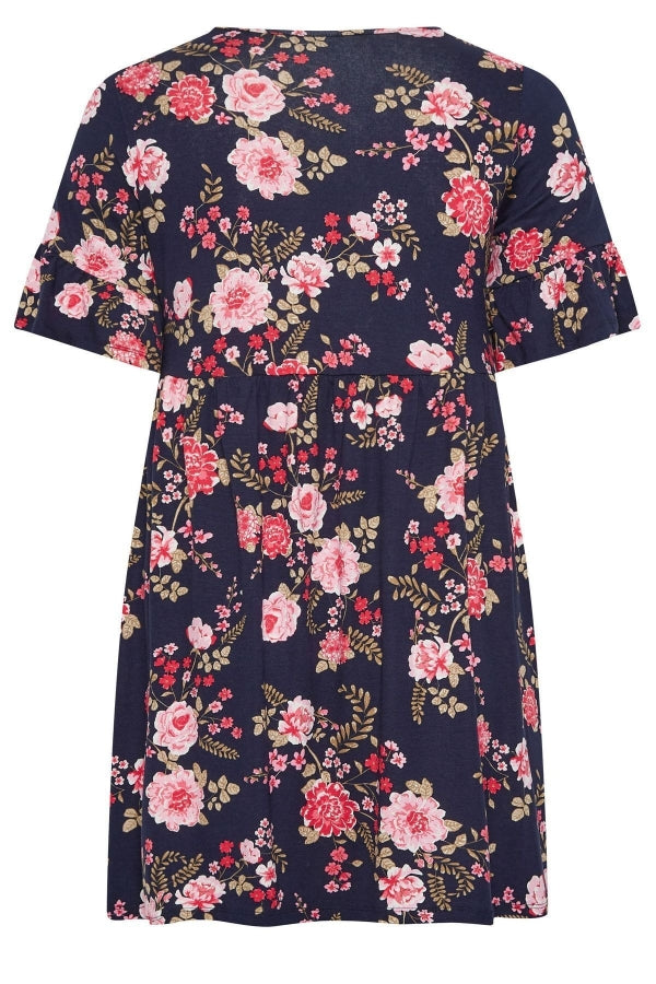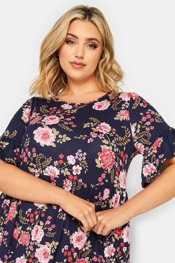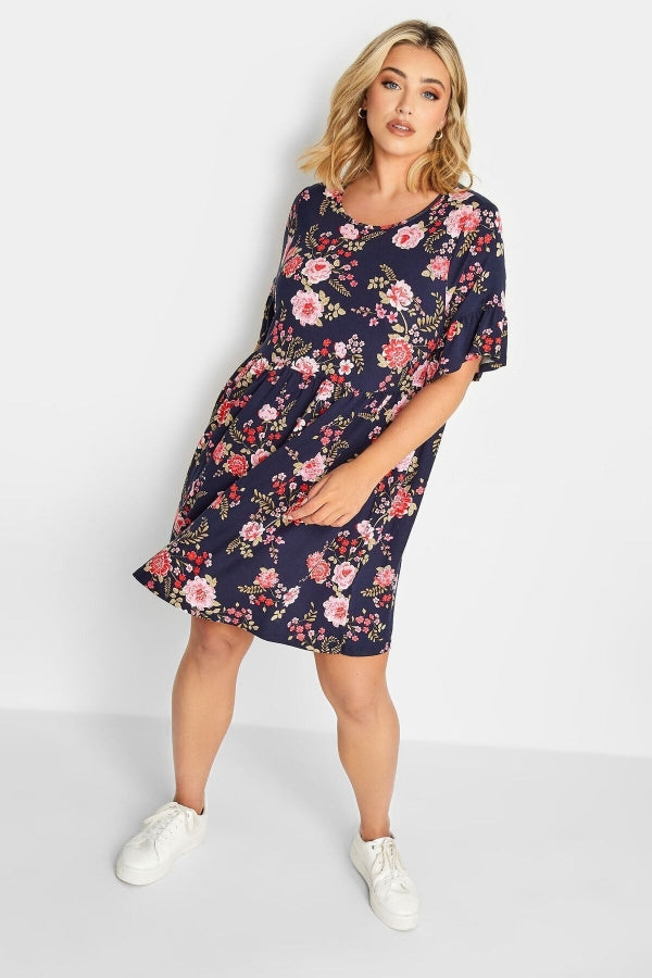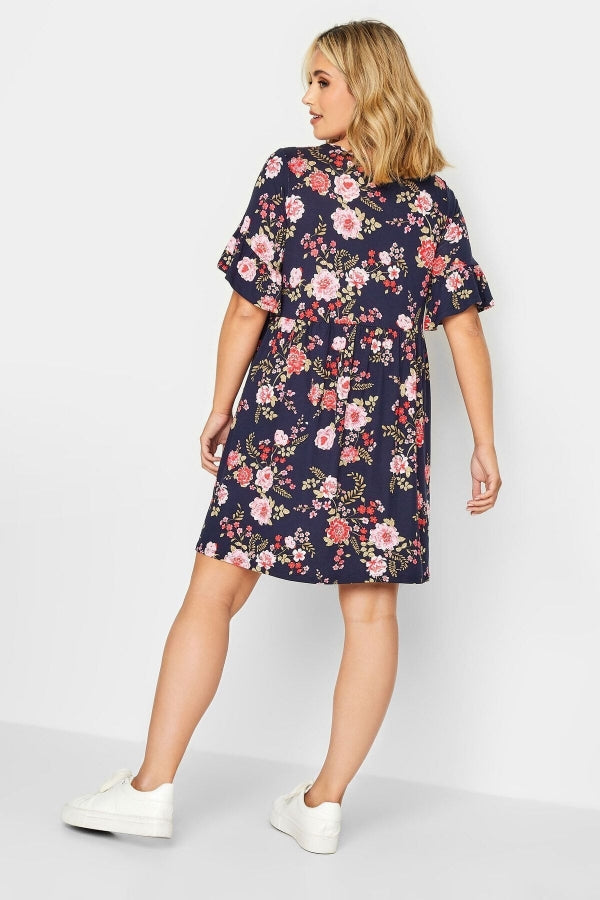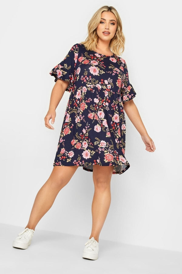 Büyük Beden Desenli Fırfırlı Yarım Kol Likralı Kısa Elbise 302357