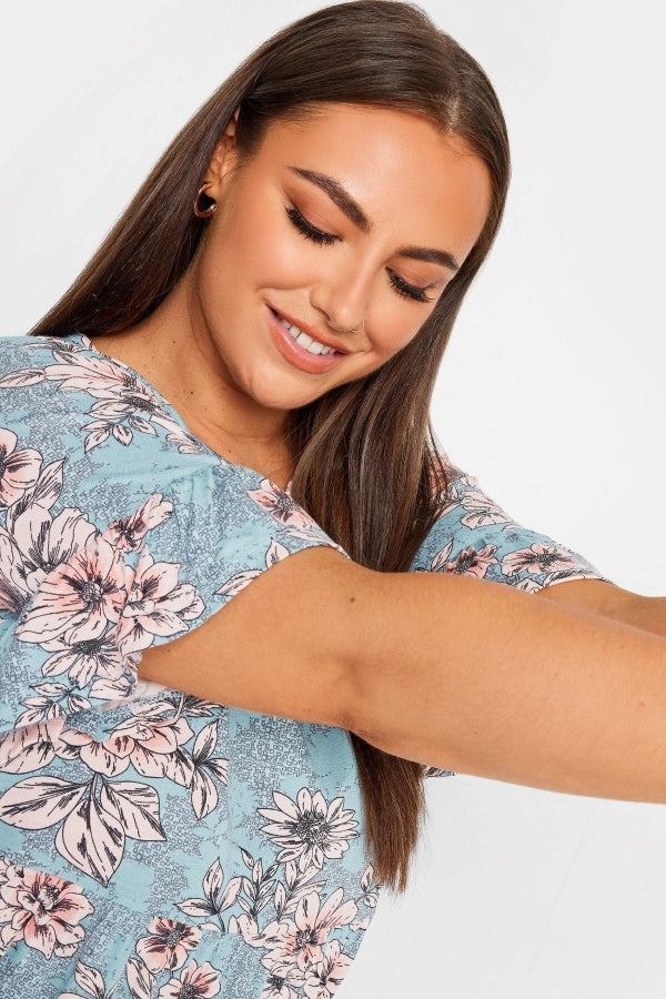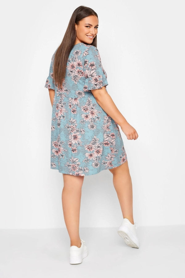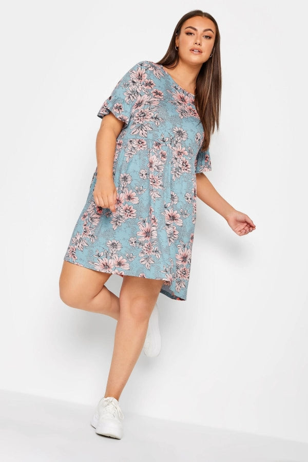 Büyük Beden Desenli Fırfırlı Yarım Kol Likralı Kısa Elbise 302362