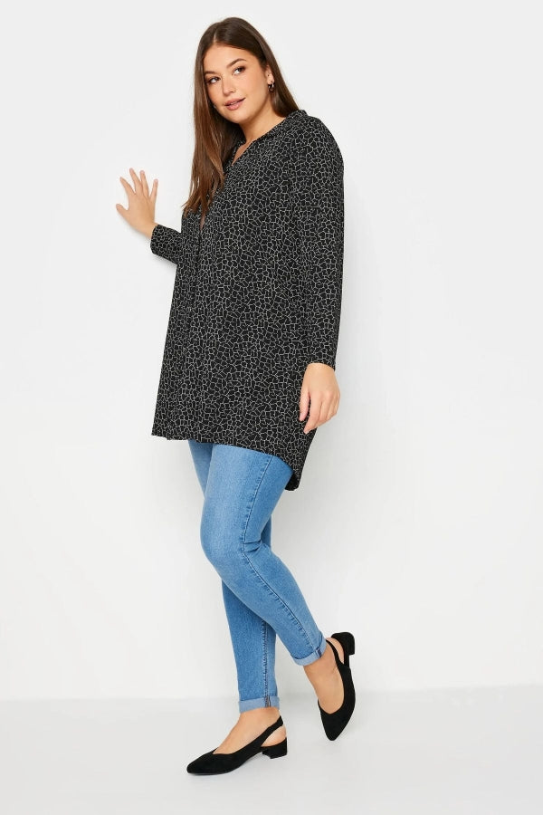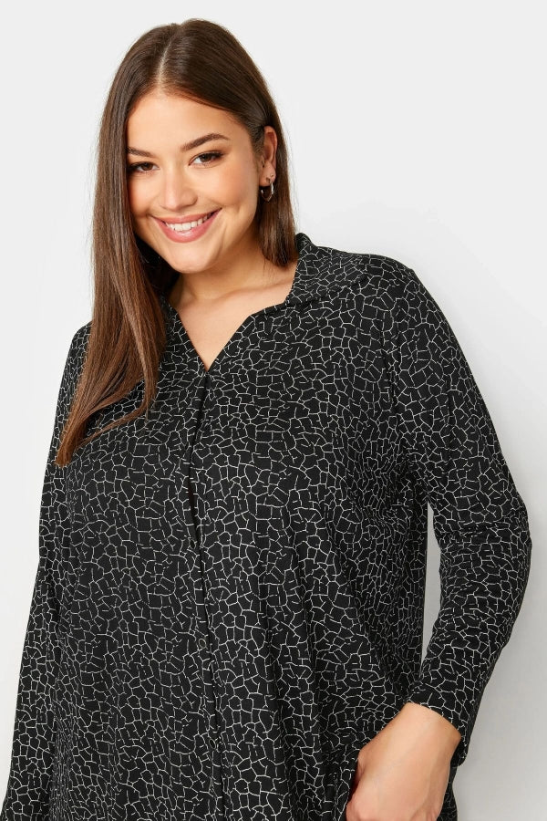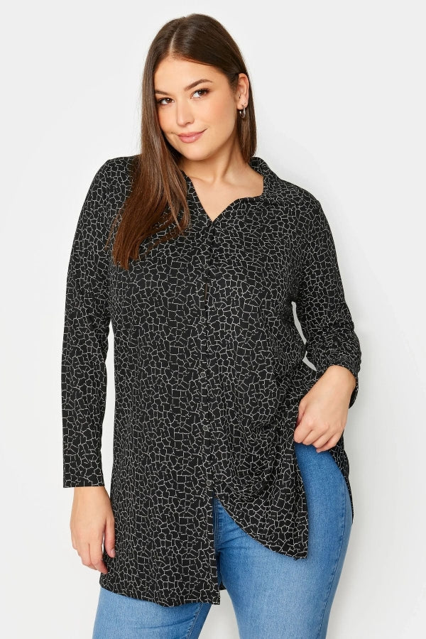 Büyük Beden Desenli Uzun Kollu Uzun Kesim Gömlek 303139