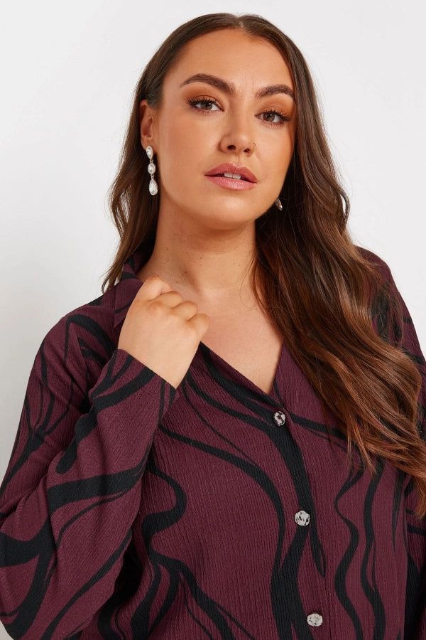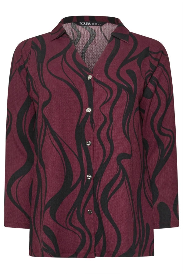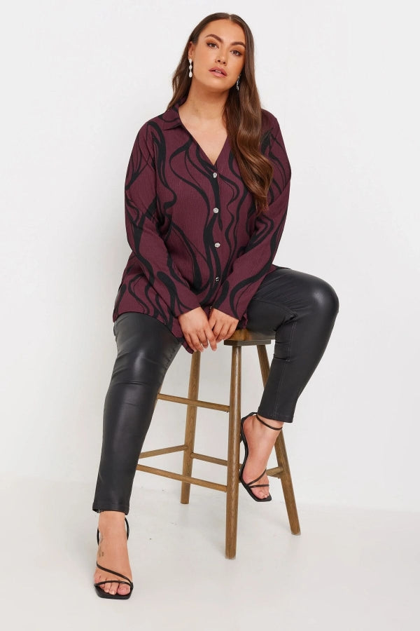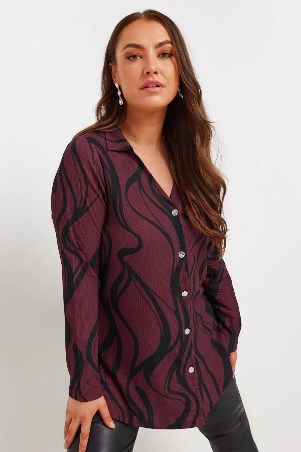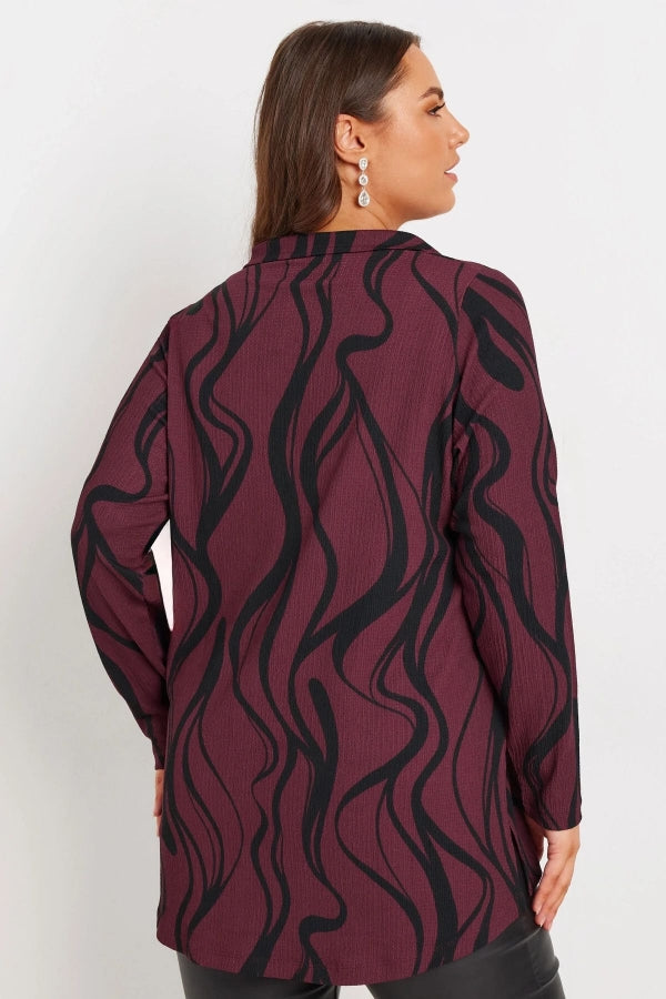 Büyük Beden Desenli V Yaka Önü Düğmeli Uzun Kollu Gömlek 322167