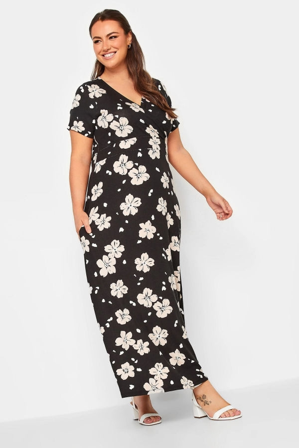 Büyük Beden Desenli V Yaka Yarım Kol Likralı Anvelop Elbise 302228