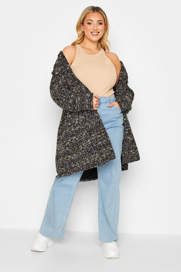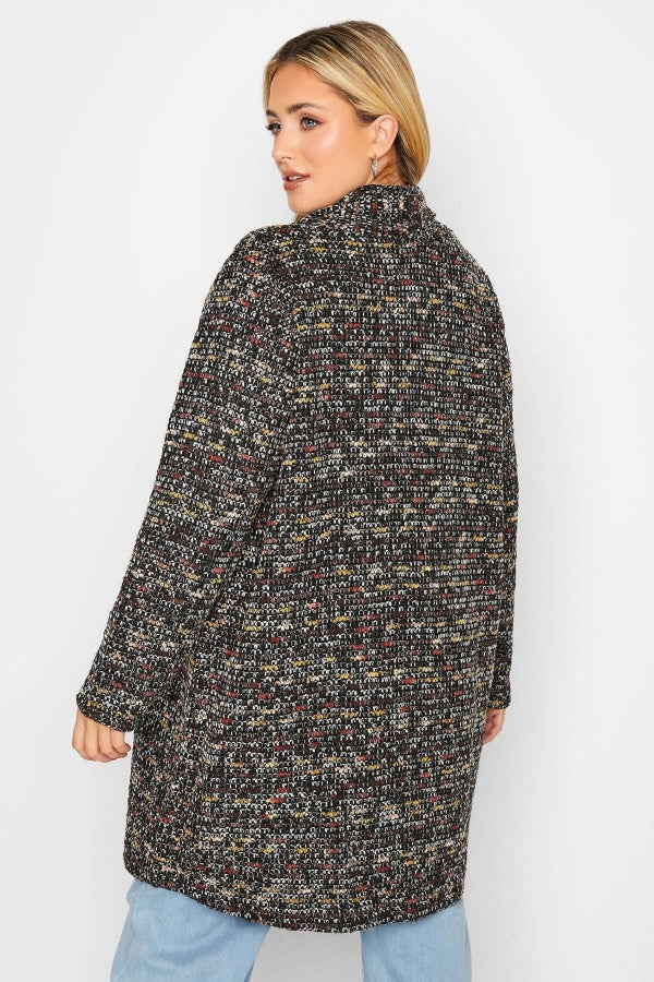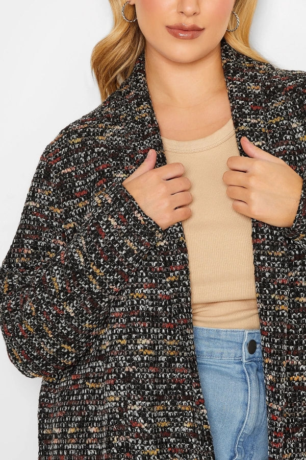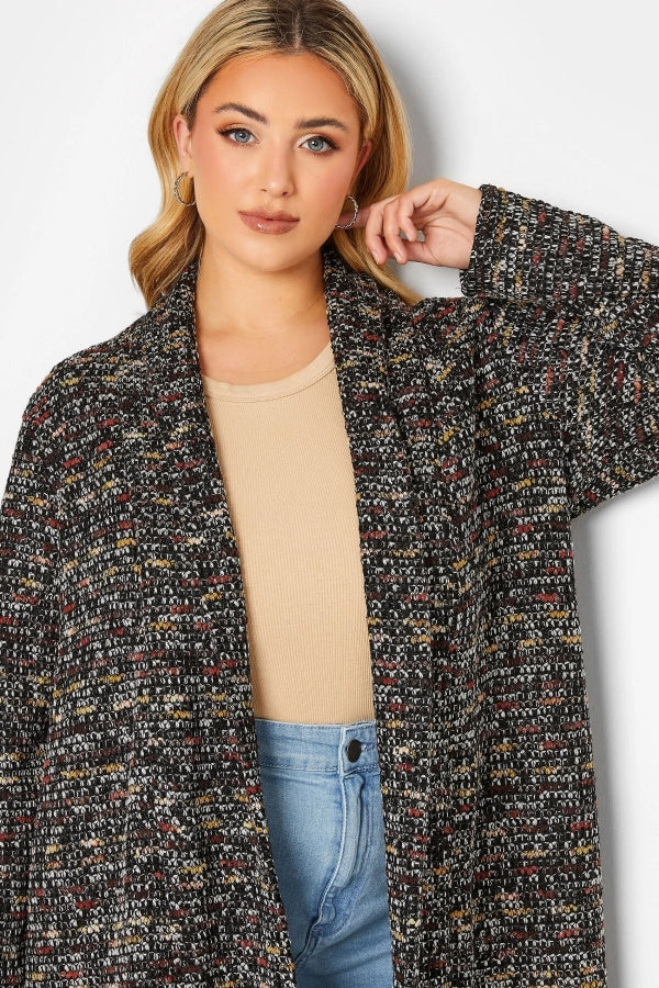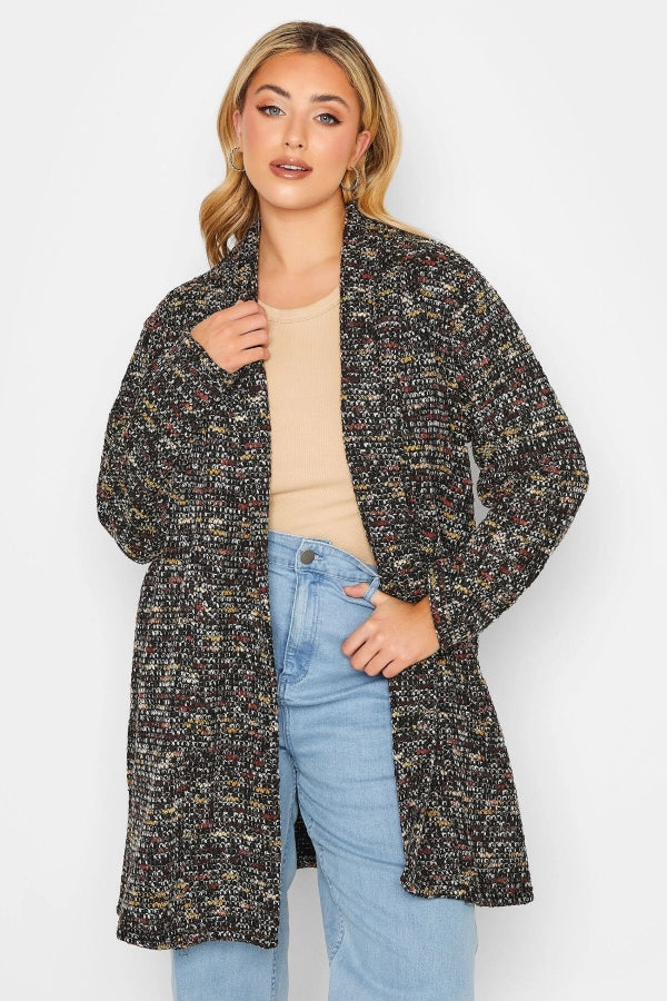 Büyük Beden Dokulu Uzun Kollu Düğmesiz Uzun Kesim Hırka 301571
