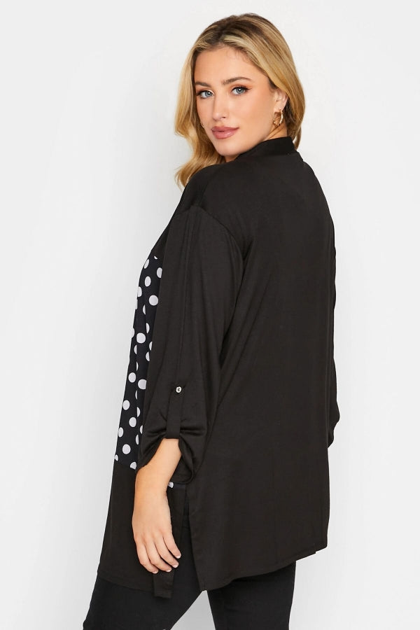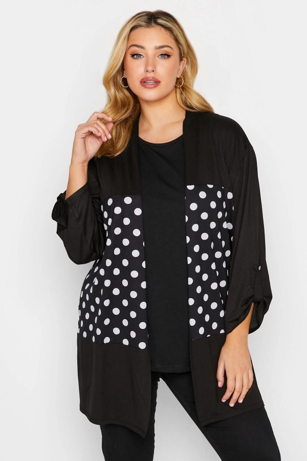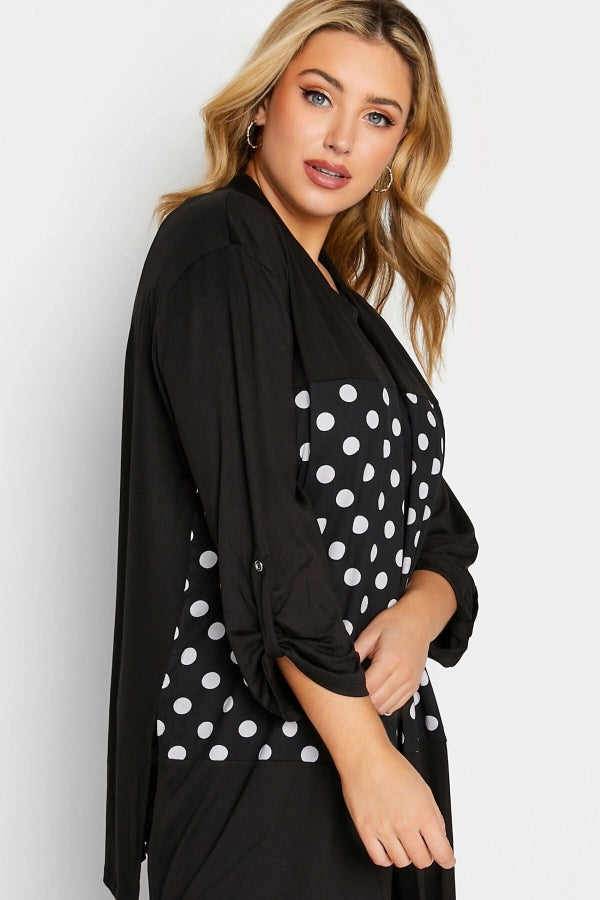 Büyük Beden Düğmesiz Puantiye Desenli Uzun Kollu Hırka 301318