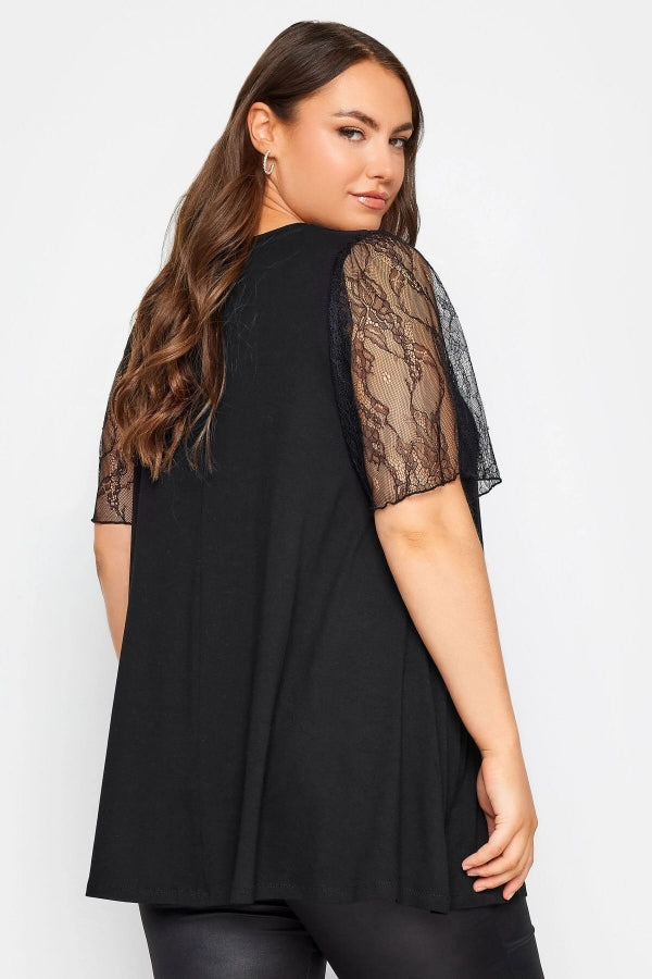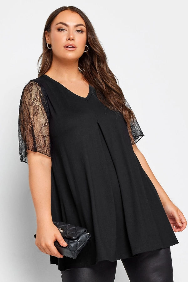 Büyük Beden Eteği Fırfırlı Kolları Tül Detaylı V Yaka Bluz 321253