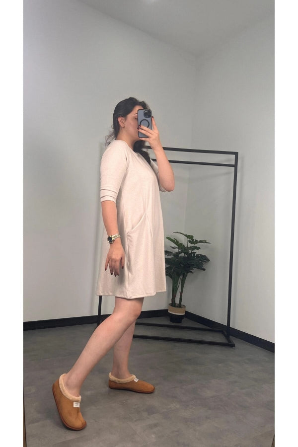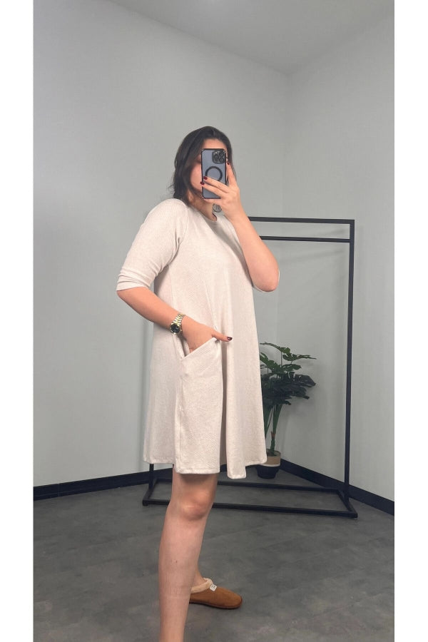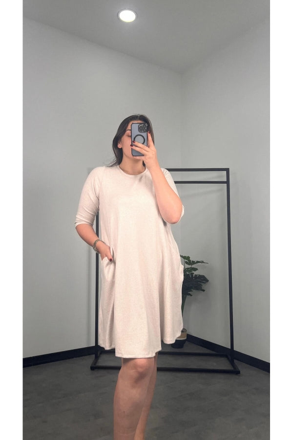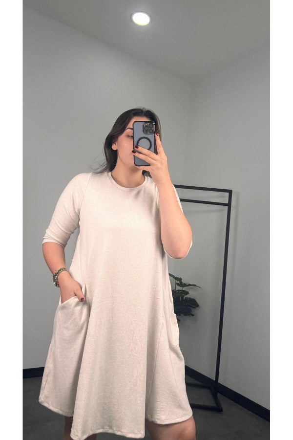 Büyük Beden Fakir Kol Bisiklet Yaka Cepli Elbise 301598