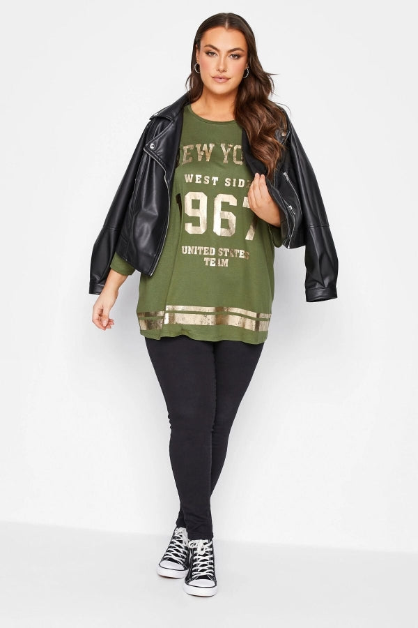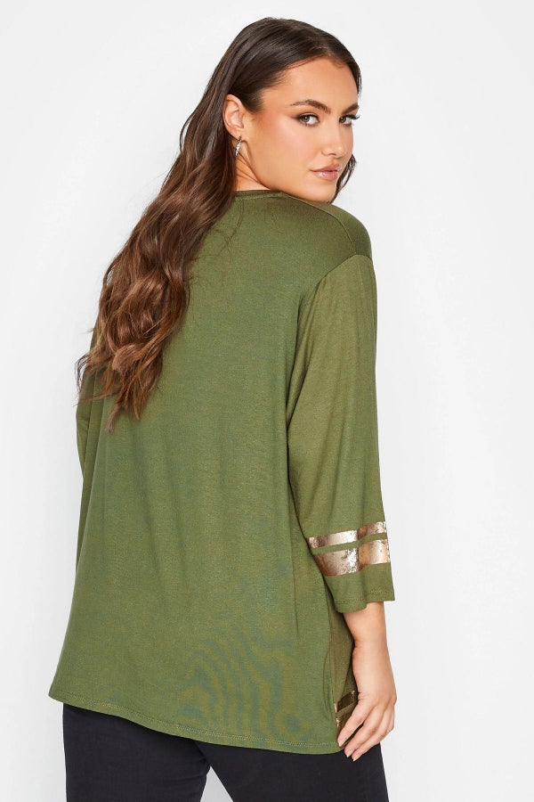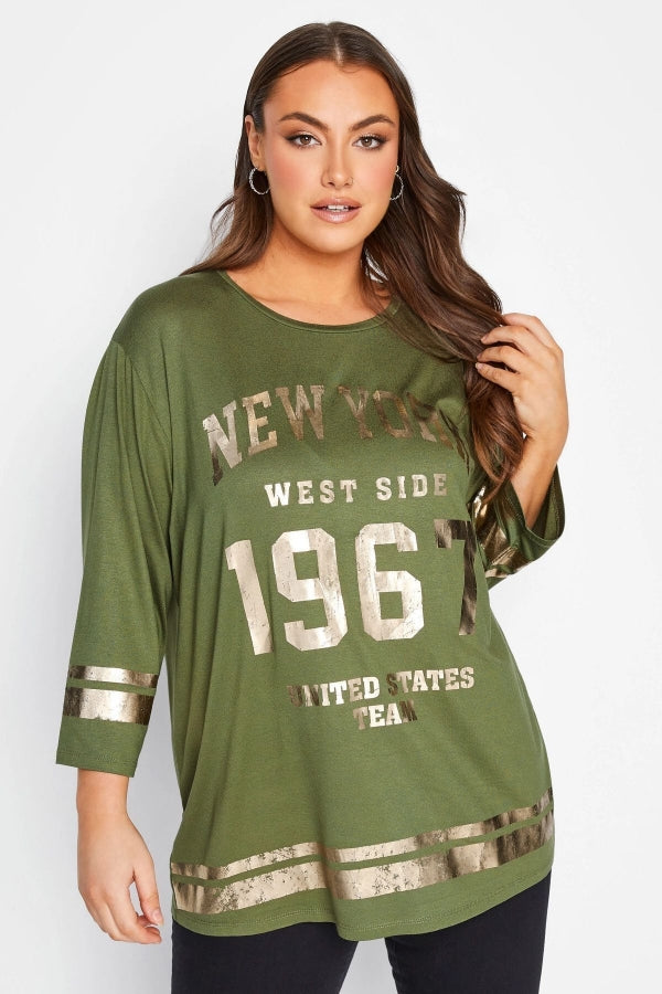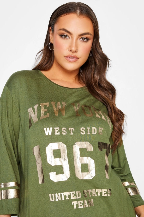 Büyük Beden Fakir Kol Metalik Yazı Baskılı Bisiklet Yaka Bluz 301398