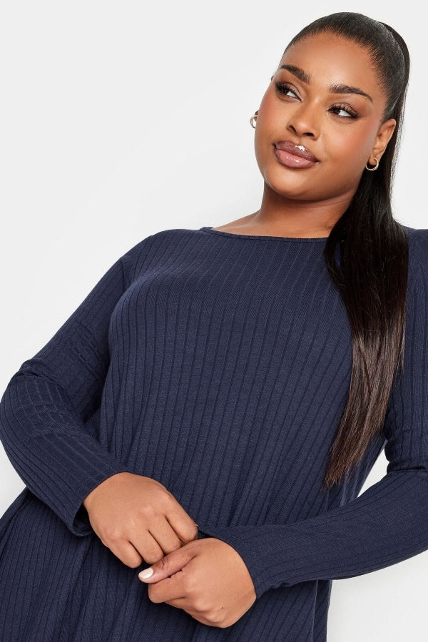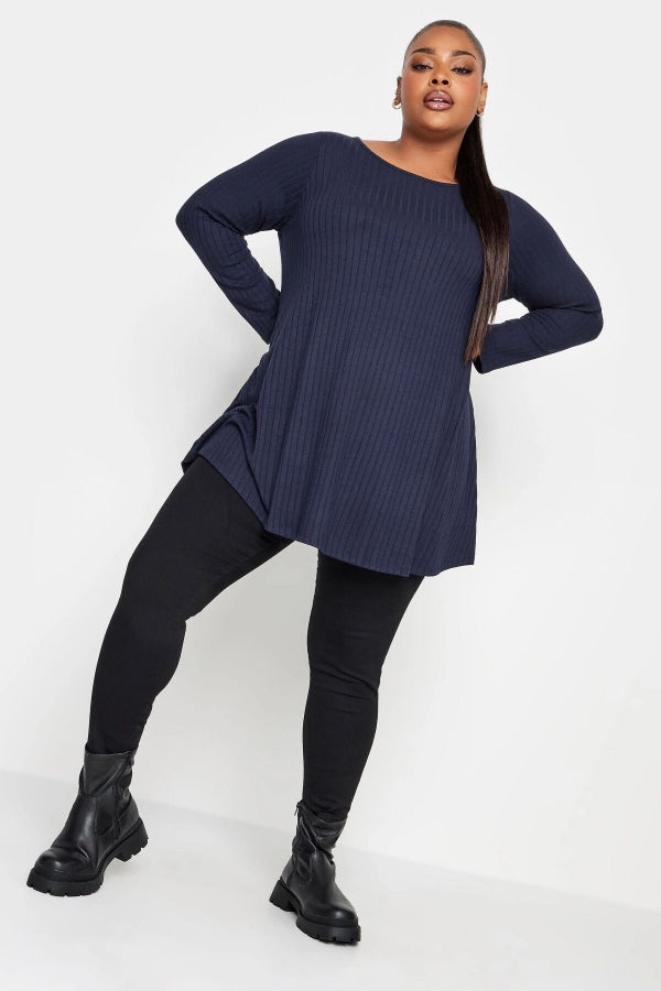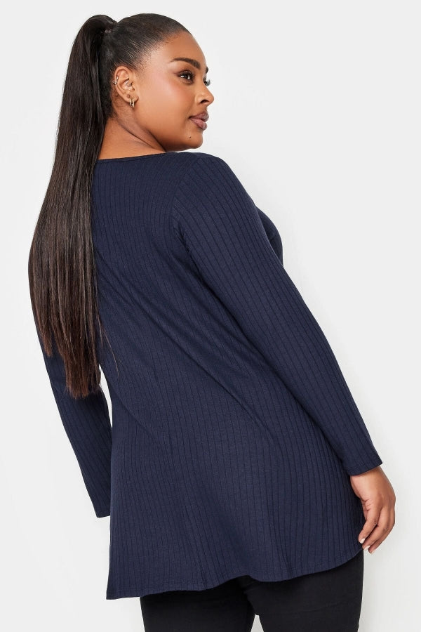 Büyük Beden Geniş Bisiklet Yaka Uzun Kollu Fitilli Bluz 302723
