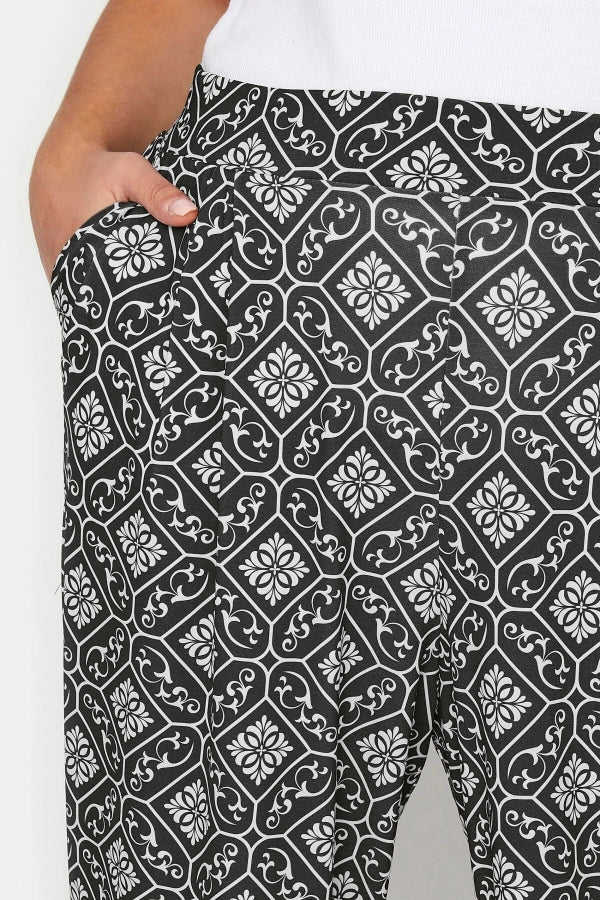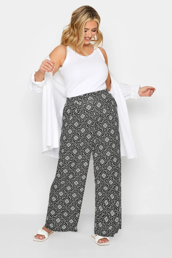 Büyük Beden Geniş Paça Desenli Beli Lastikli Likralı Pantolon 302214