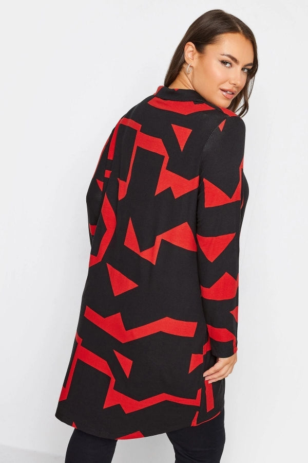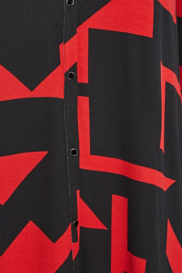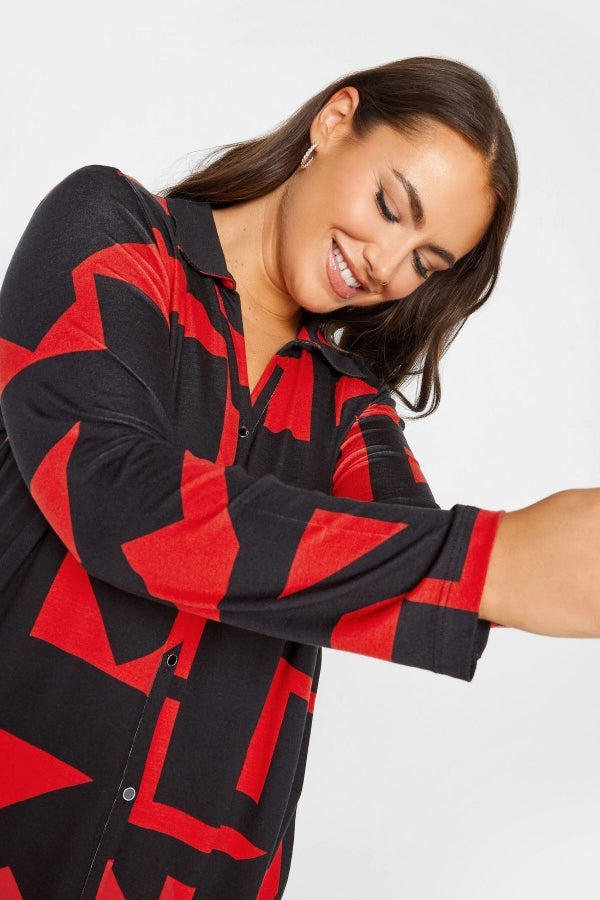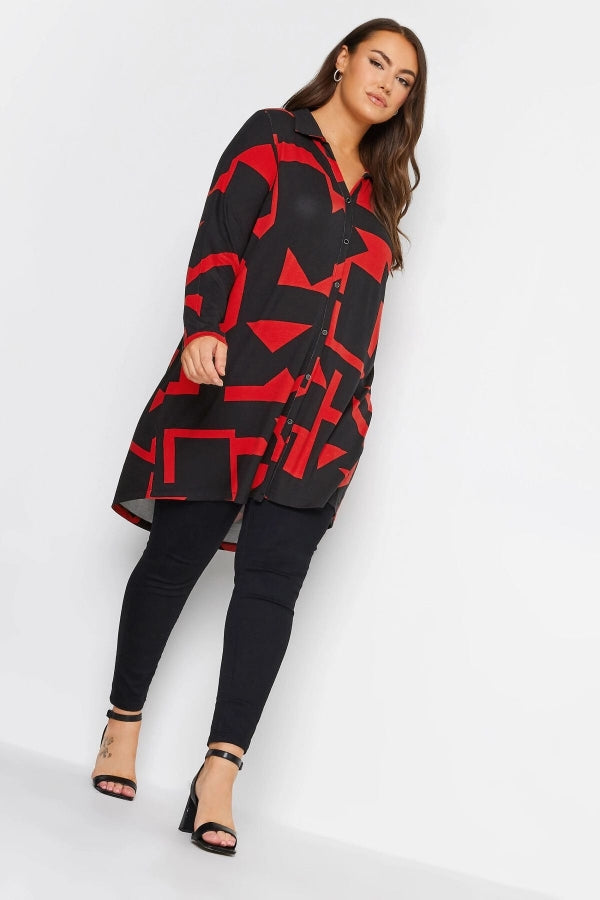 Büyük Beden Geometrik Desenli Uzun Kesim Uzun Kollu Gömlek 321233