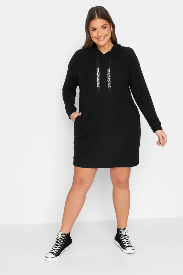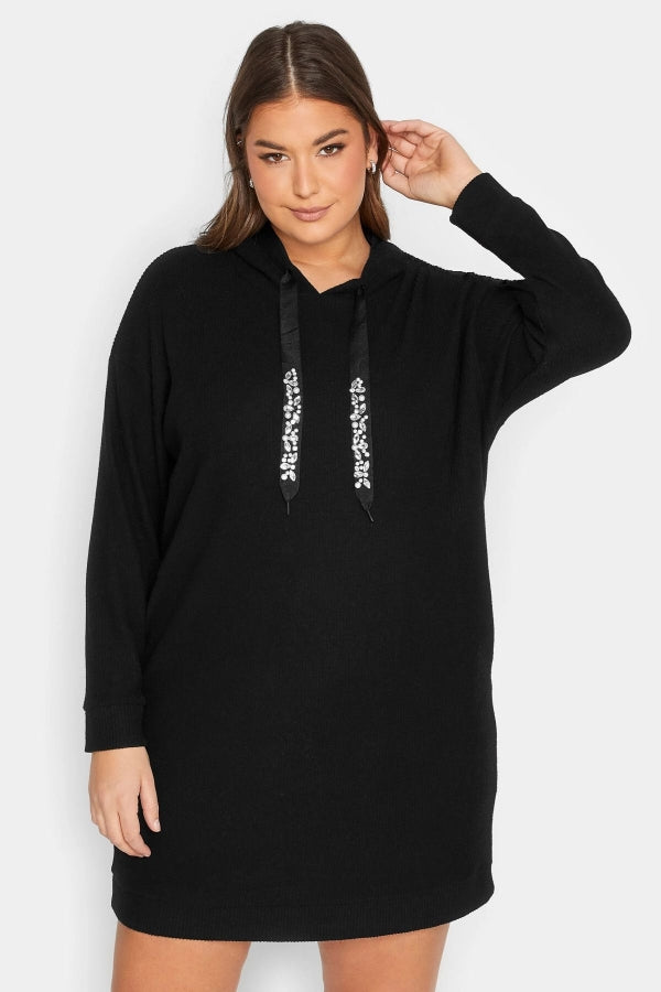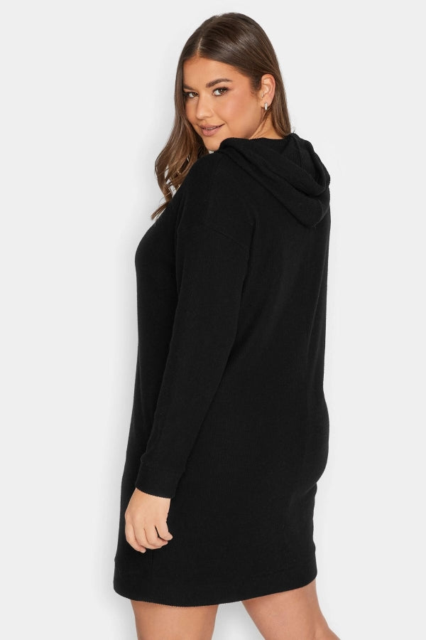 Büyük Beden Kapüşonlu Cepli Uzun Kollu Sweat Elbise 301574