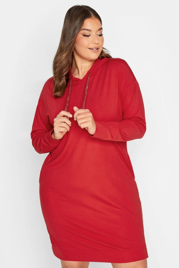Büyük Beden Kapüşonlu Cepli Uzun Kollu Sweat Elbise 301730