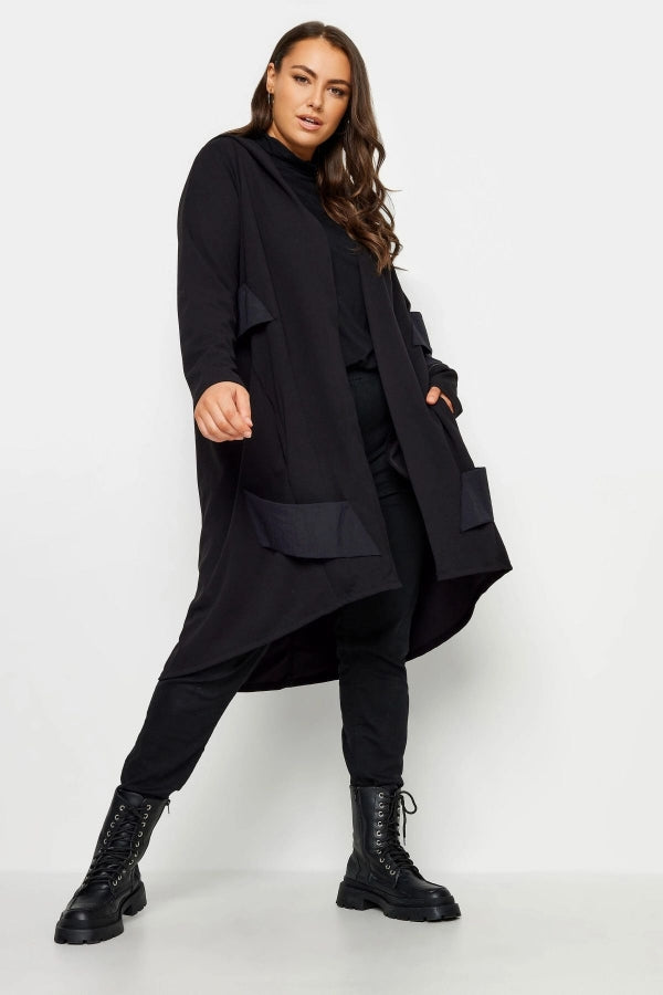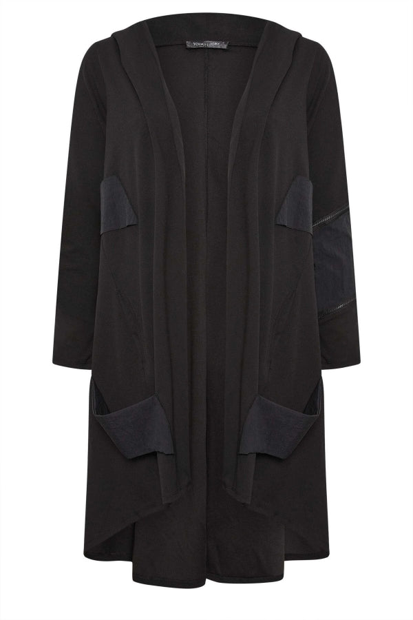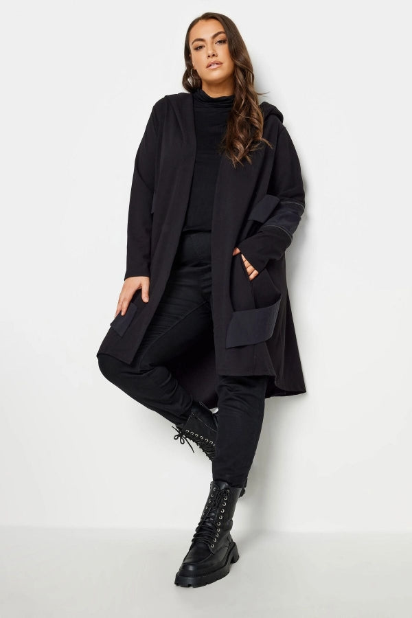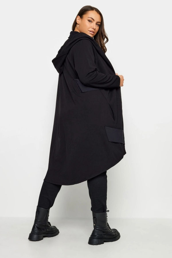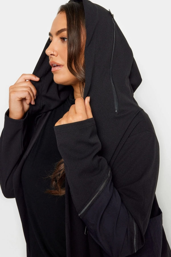 Büyük Beden Kapüşonlu Fermuar Detaylı Cepli Asimetrik Kesim Uzun Hırka 302716