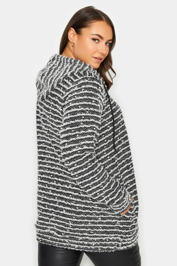 Büyük Beden Kapüşonlu Fermuarlı Uzun Kollu Sakallı Örme Hırka 302885
