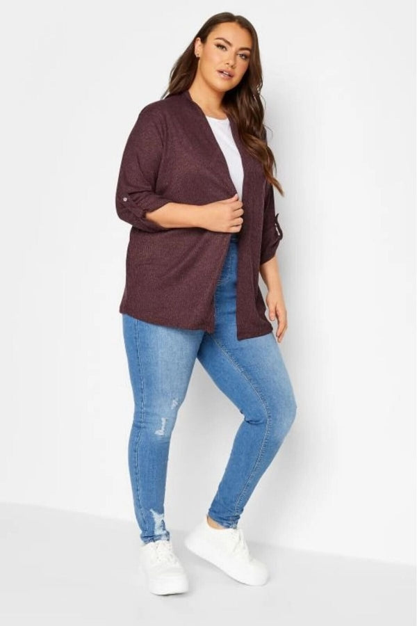 Büyük Beden Kol Detaylı Düğmesiz Triko Hırka 301431