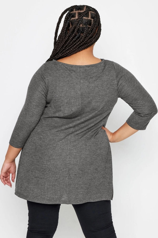 Büyük Beden Leopar Desen Baskılı Yırtmaç Detaylı Yarım Kolu Bluz 285010