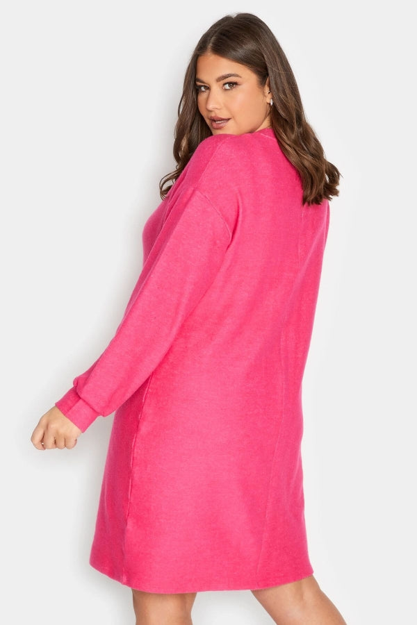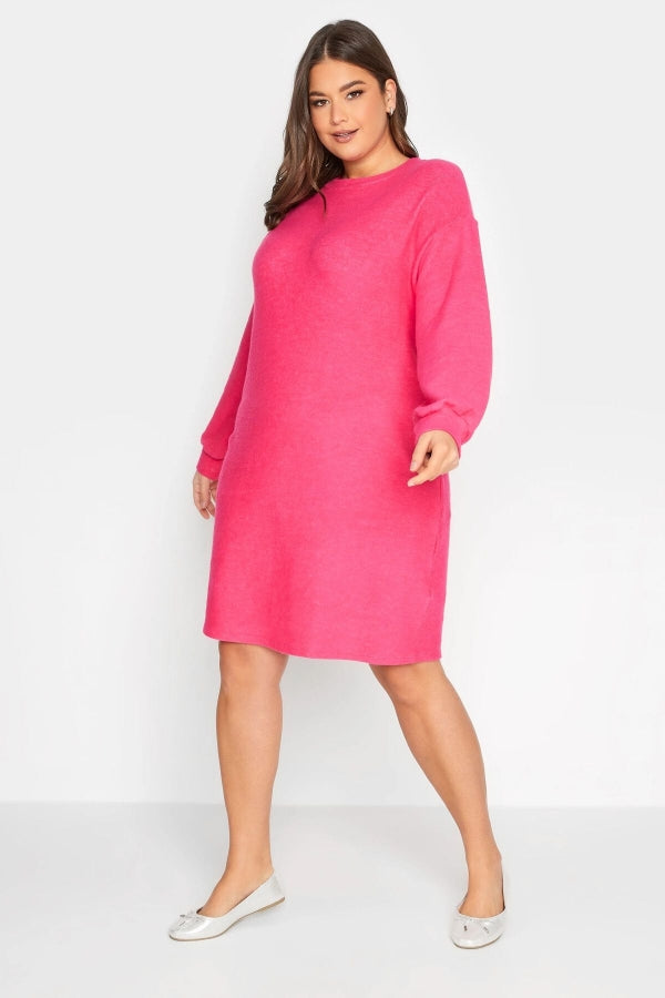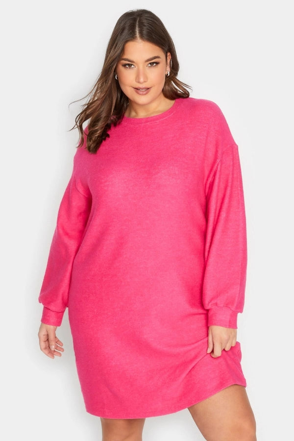 Büyük Beden Likralı Uzun Kollu Yuvarlak Yaka Triko Elbise 301739