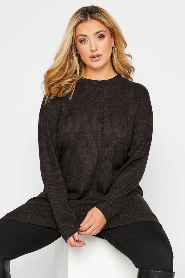 Büyük Beden Nervürlü Uzun Kesim Uzun Kollu Triko Kazak 301300
