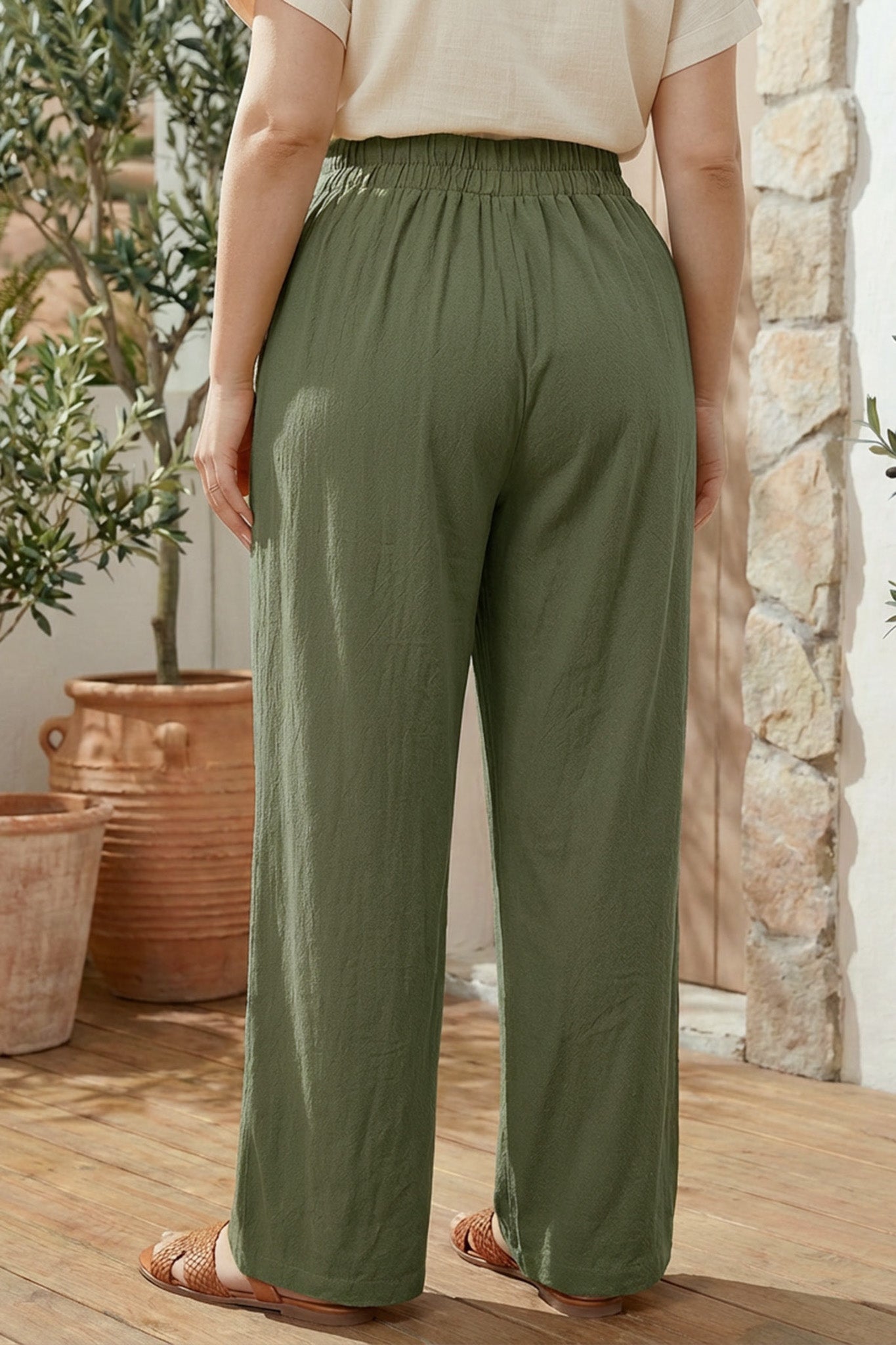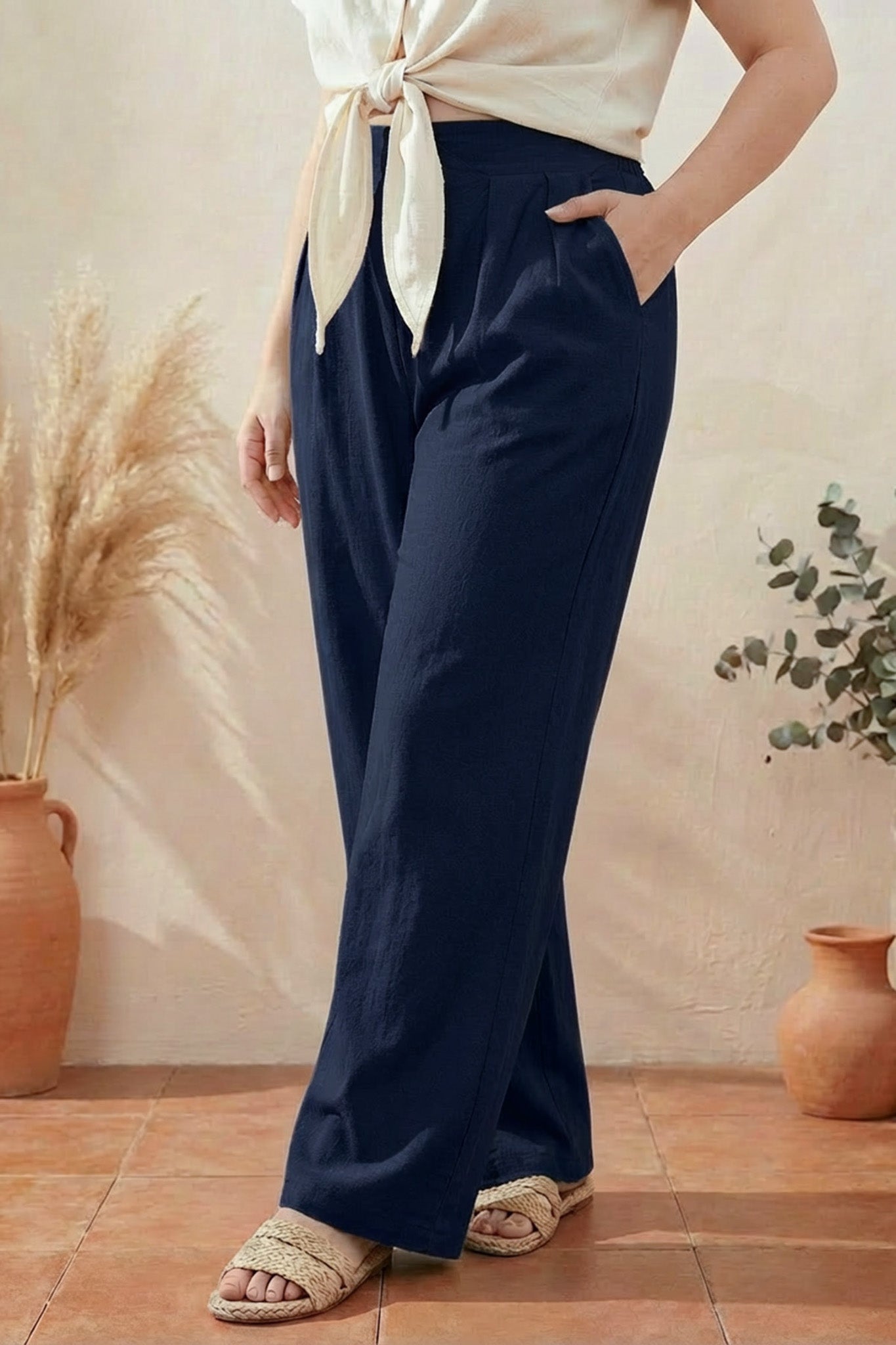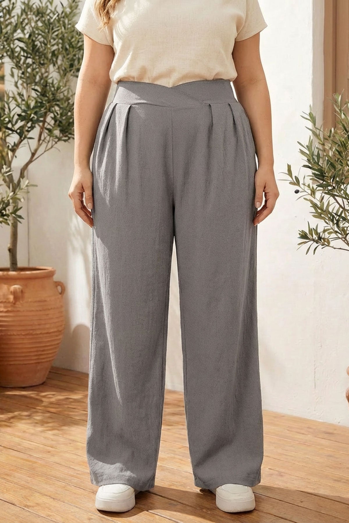 Model Detayı: Önü pileli, yüksek bel, yan cepli, geniş paça, fermuar ve düğme kapamalı.