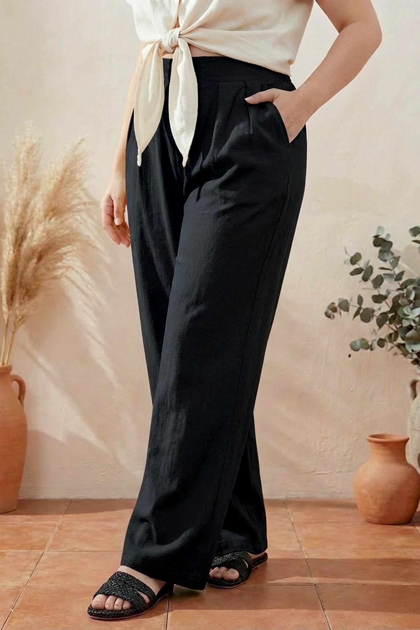 Zamansız şıklığın ve sınırsız konforun anahtarı: Büyük Beden İspanyol Paça Siyah Pantolon.