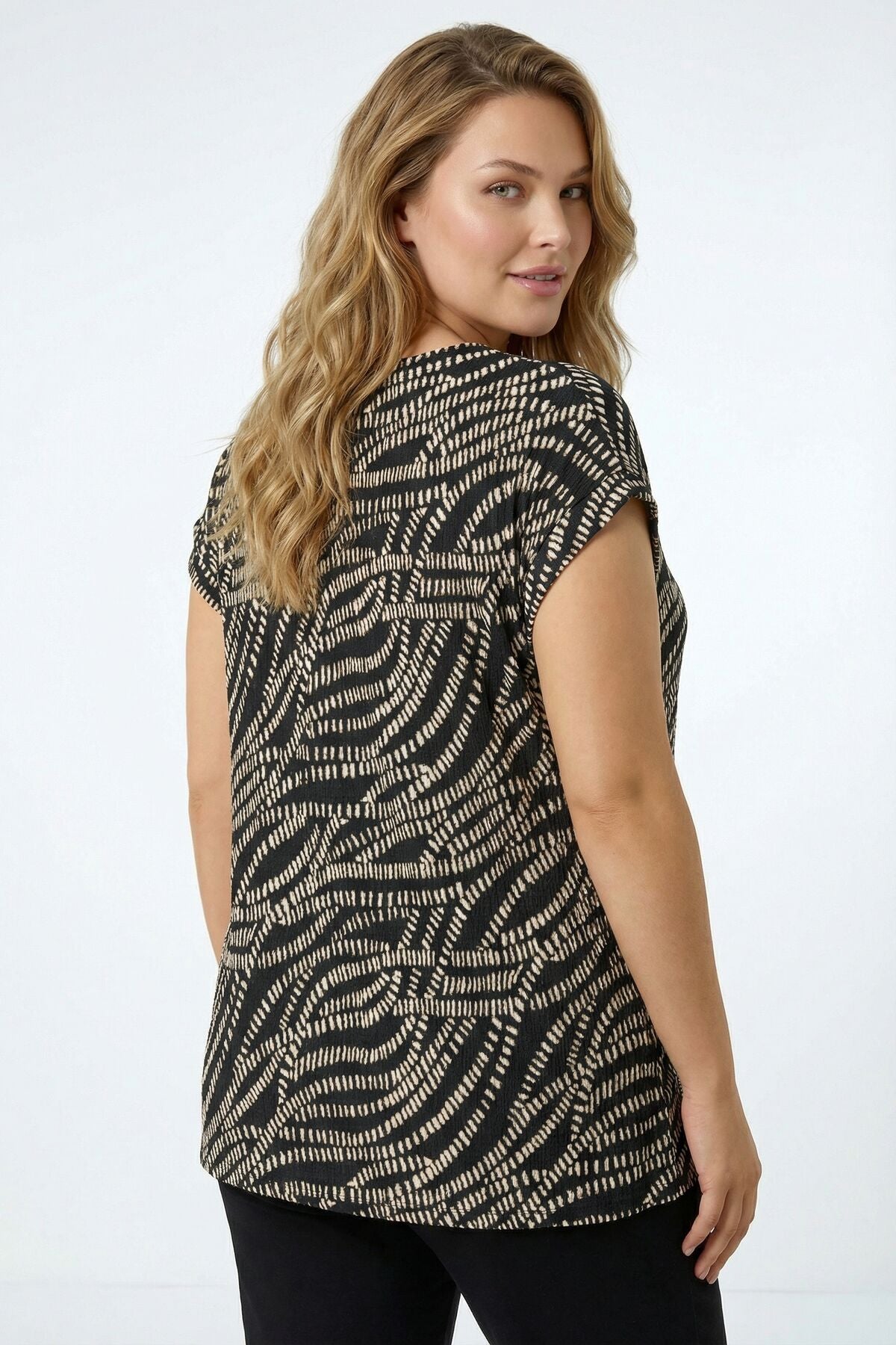 Vervegrand'ın en yeni büyük beden bluz koleksiyonundan, şıklığınızı bir adım öteye taşıyacak soyut baskılı bluz ile tanışın. Siyahın asaleti ve soyut desenin modernliği bu bluzda buluşuyor. Yandan bağlama detayı ile tarzınıza farklı bir dokunuş katın. Hem günlük kullanım hem de özel günler için ideal!