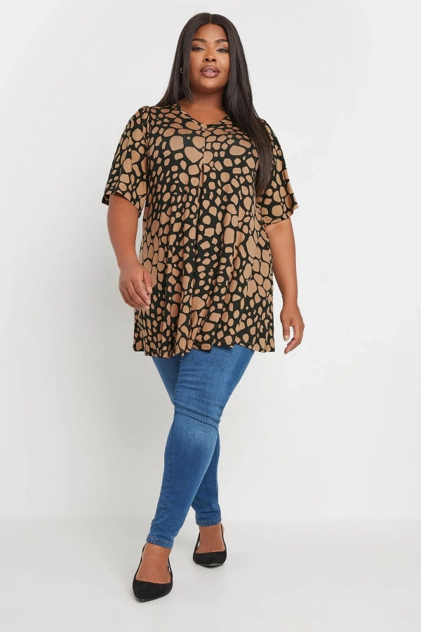 Büyük Beden V Yaka Desenli Asimetrik Kesim Likralı Bluz 303438