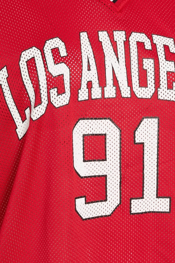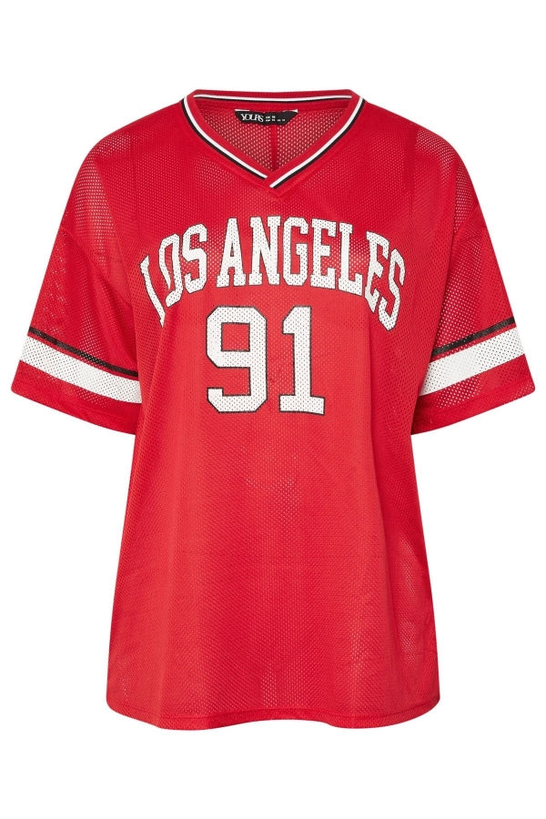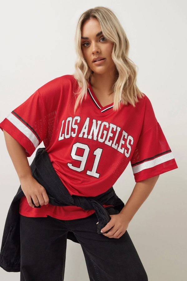 Büyük Beden V Yaka Kısa Kollu Baskılı File T-shirt 303494