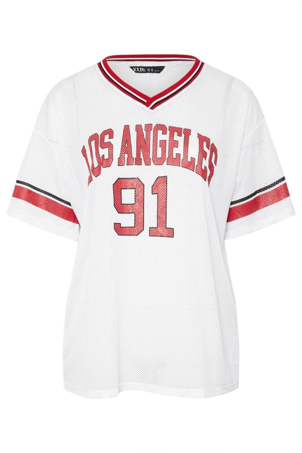 Büyük Beden V Yaka Kısa Kollu Baskılı File T-shirt 303495