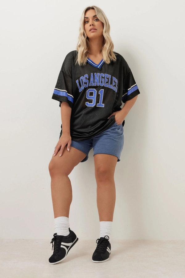Büyük Beden V Yaka Kısa Kollu Baskılı File T-shirt 304004