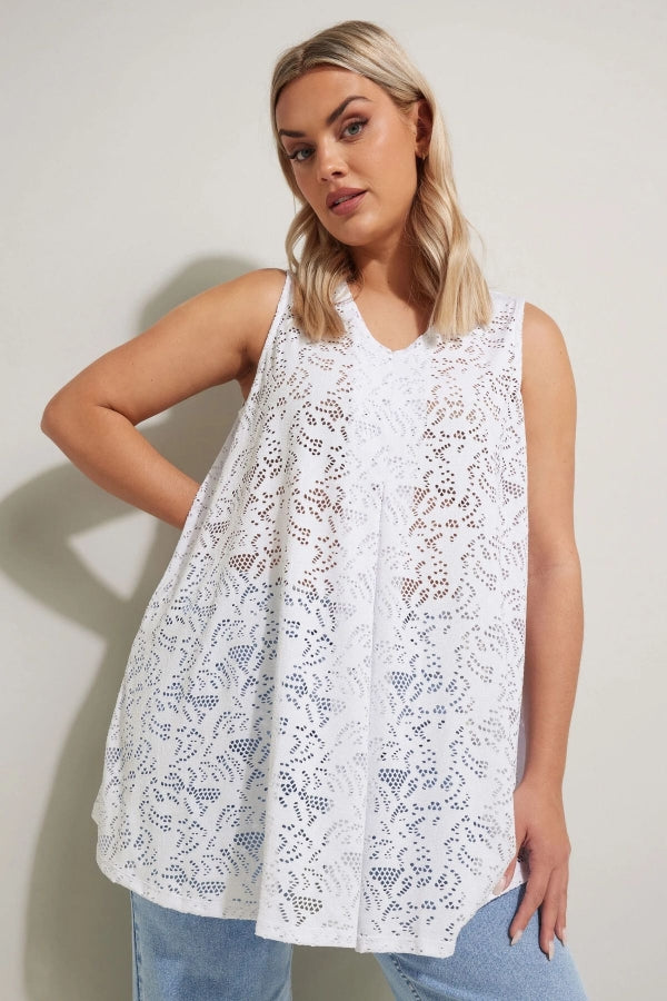 Büyük Beden V Yaka Sıfır Kol Astarsız Dantel Bluz 304098