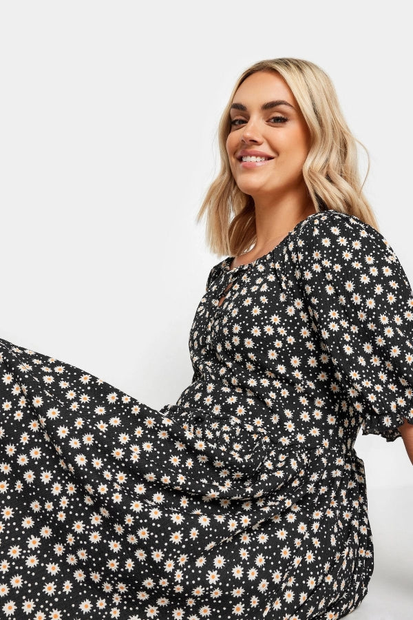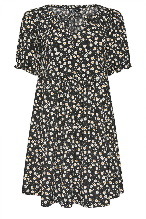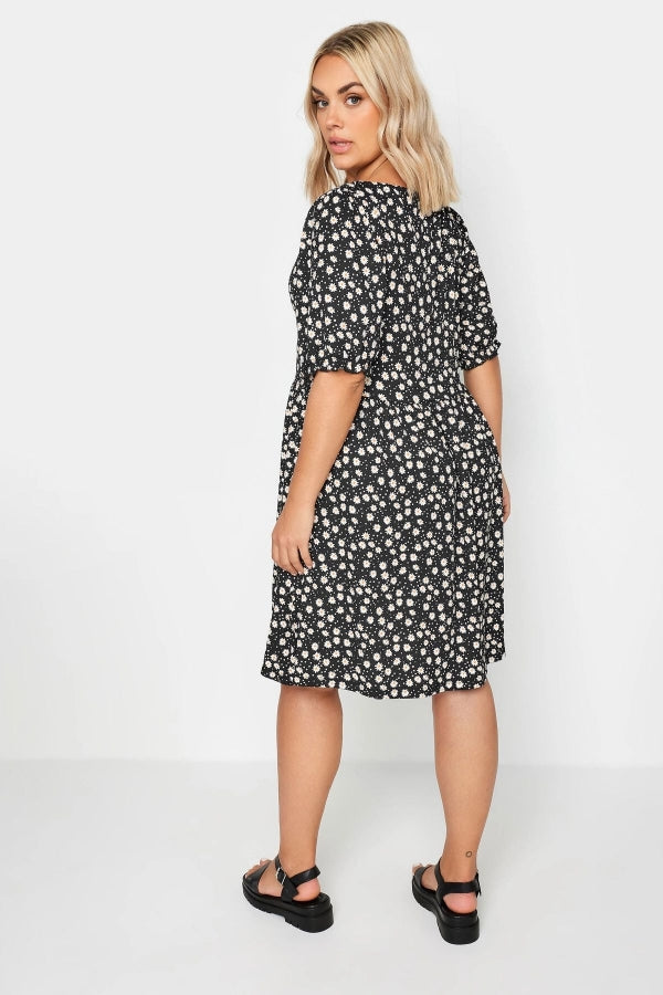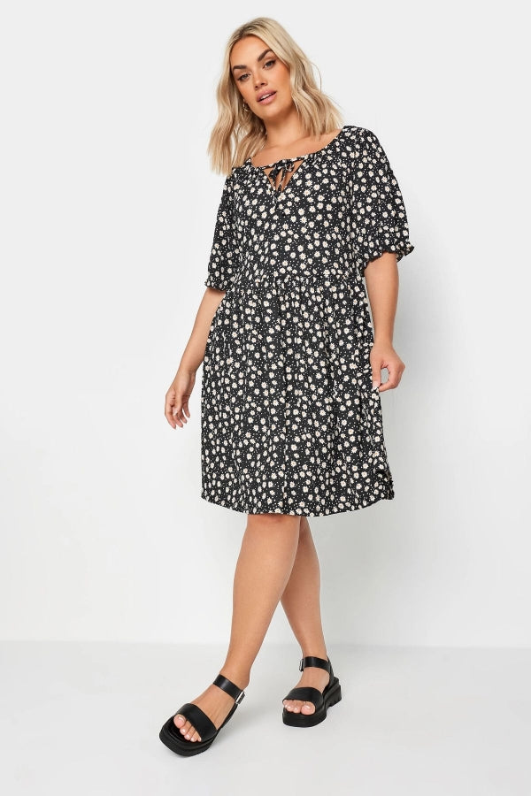 Büyük Beden Bağlama Detaylı Kolları Fırfırlı Çiçek Desenli Elbise 303188