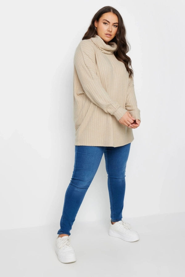 Büyük Beden Balıkçı Yaka Uzun Kollu Yumuşak Dokulu Kazak 303227