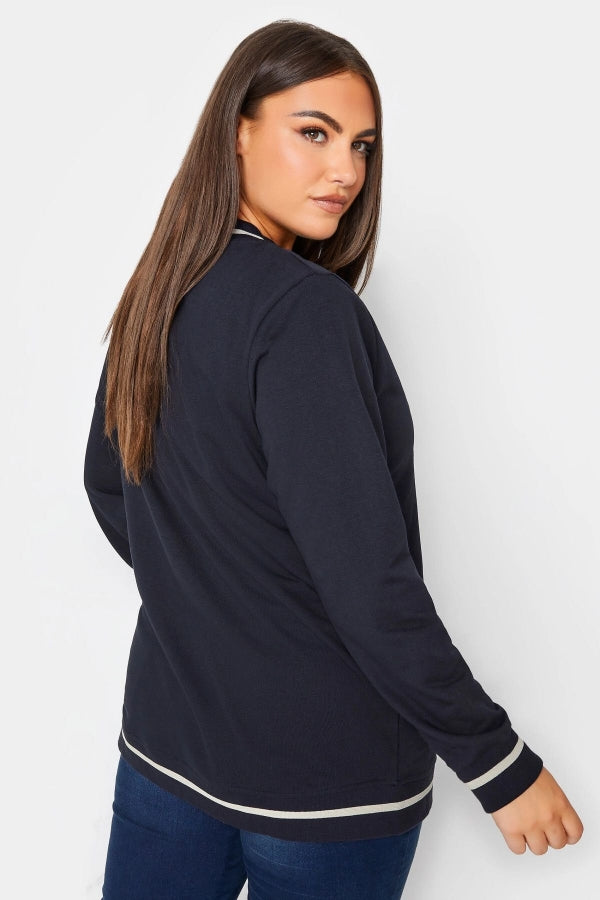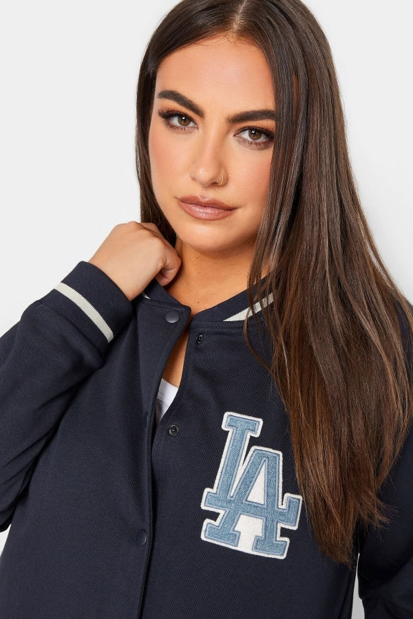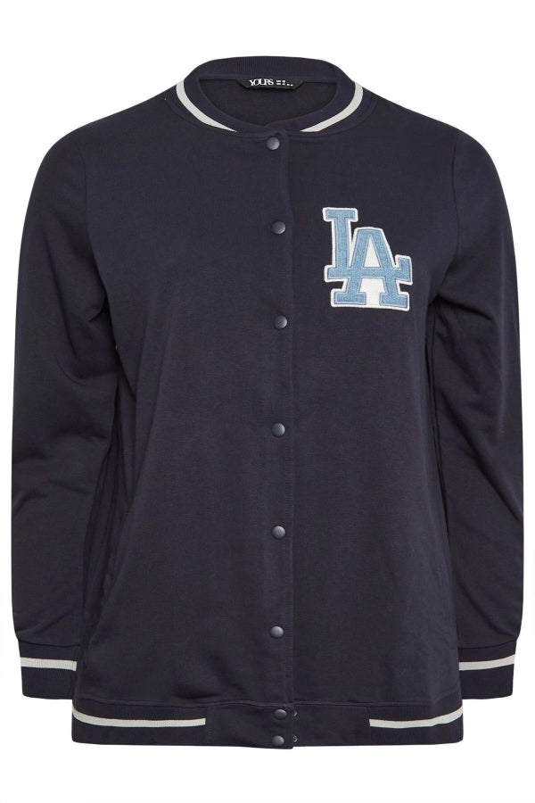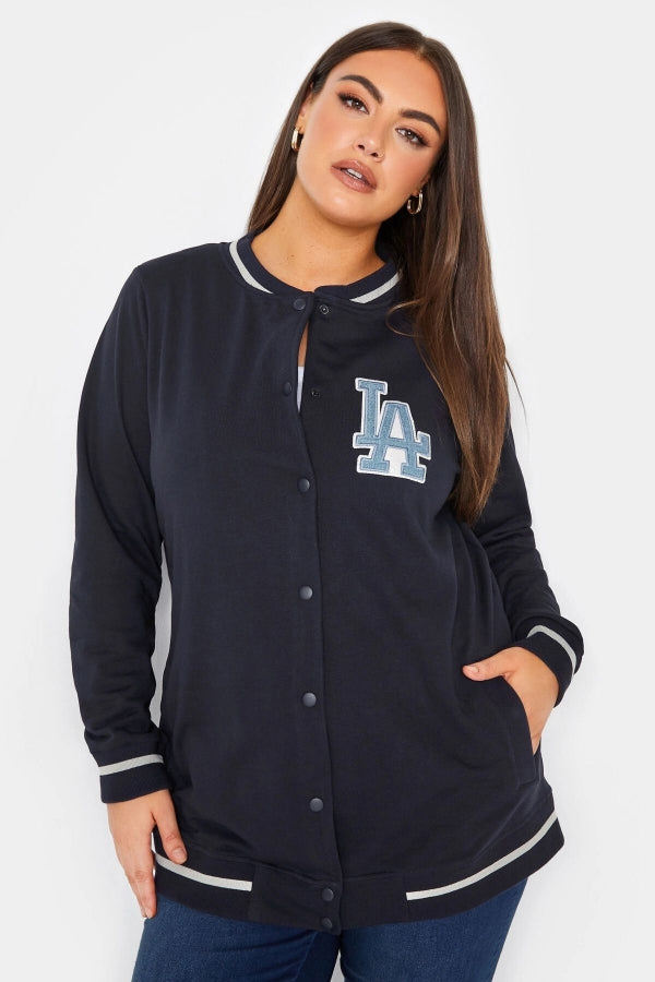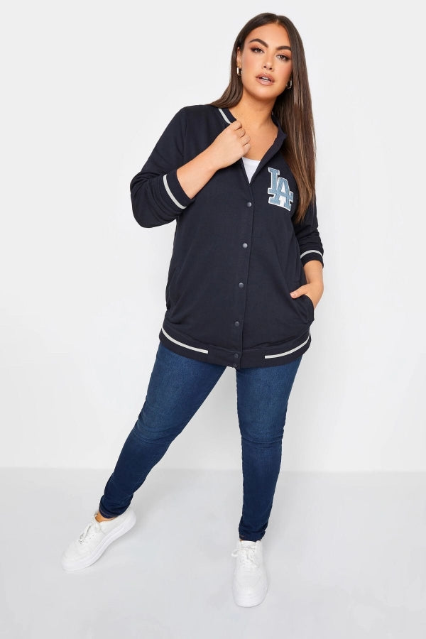 Büyük Beden Baskılı Düğmeli Uzun Kollu Kolej Bomber Ceket 302026