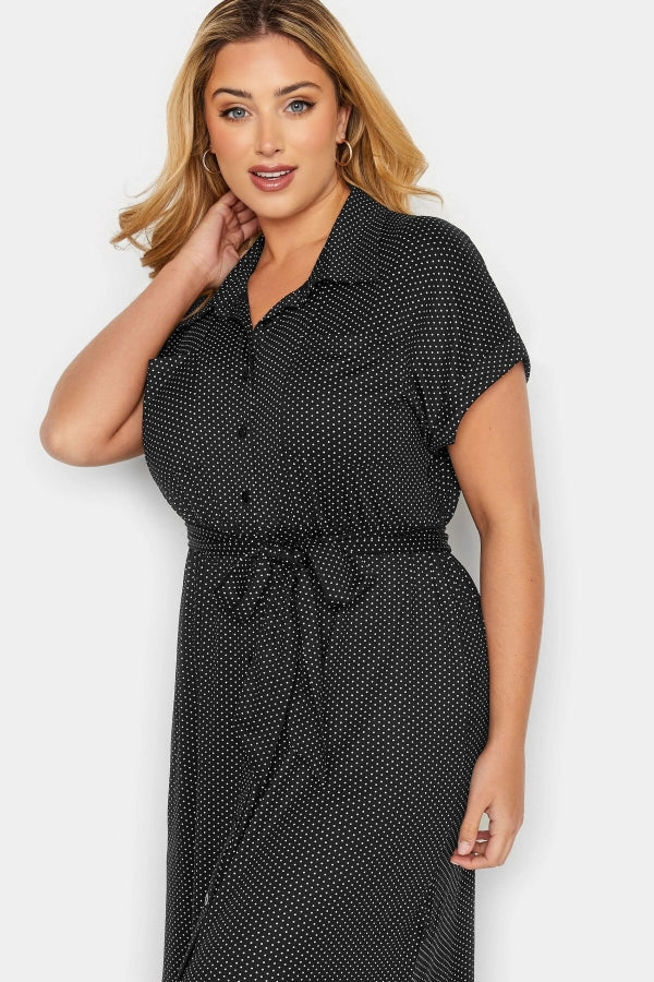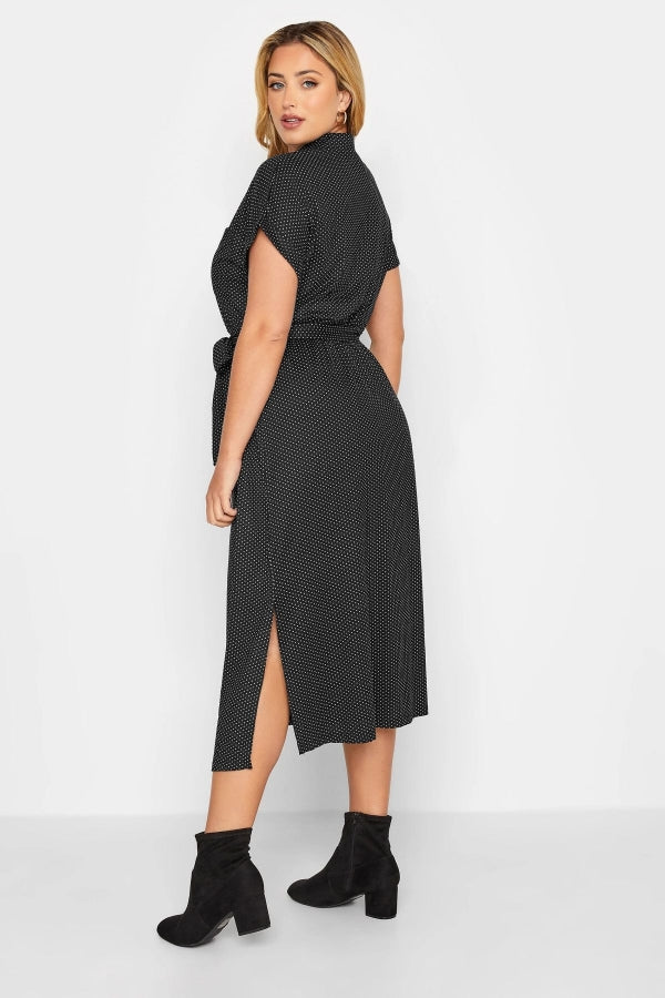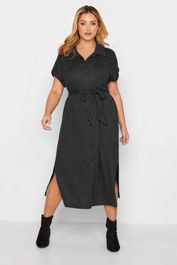 Büyük Beden Beli Kuşaklı Yırtmaç Detaylı Desenli Gömlek Elbise 301488