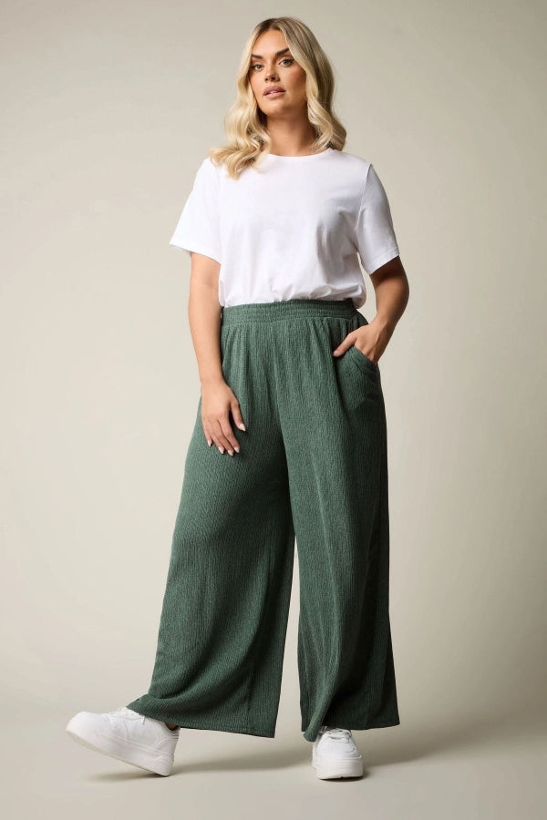 Büyük Beden Beli Lastikli Bol Paça Cepli Pantolon 304010