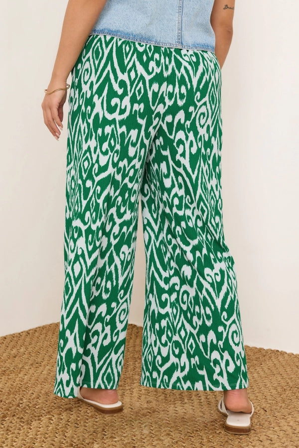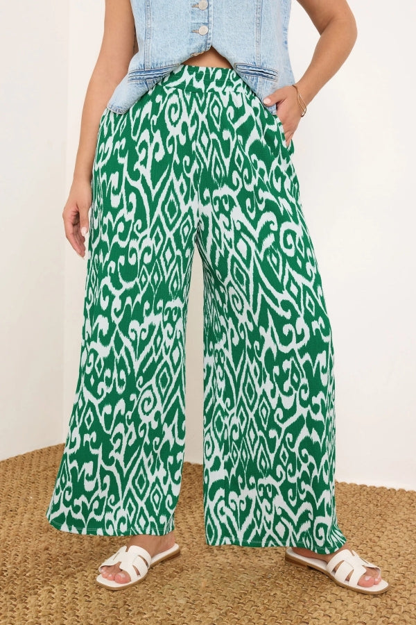 Büyük Beden Beli Lastikli Bol Paça Desenli Cepli Pantolon 303969